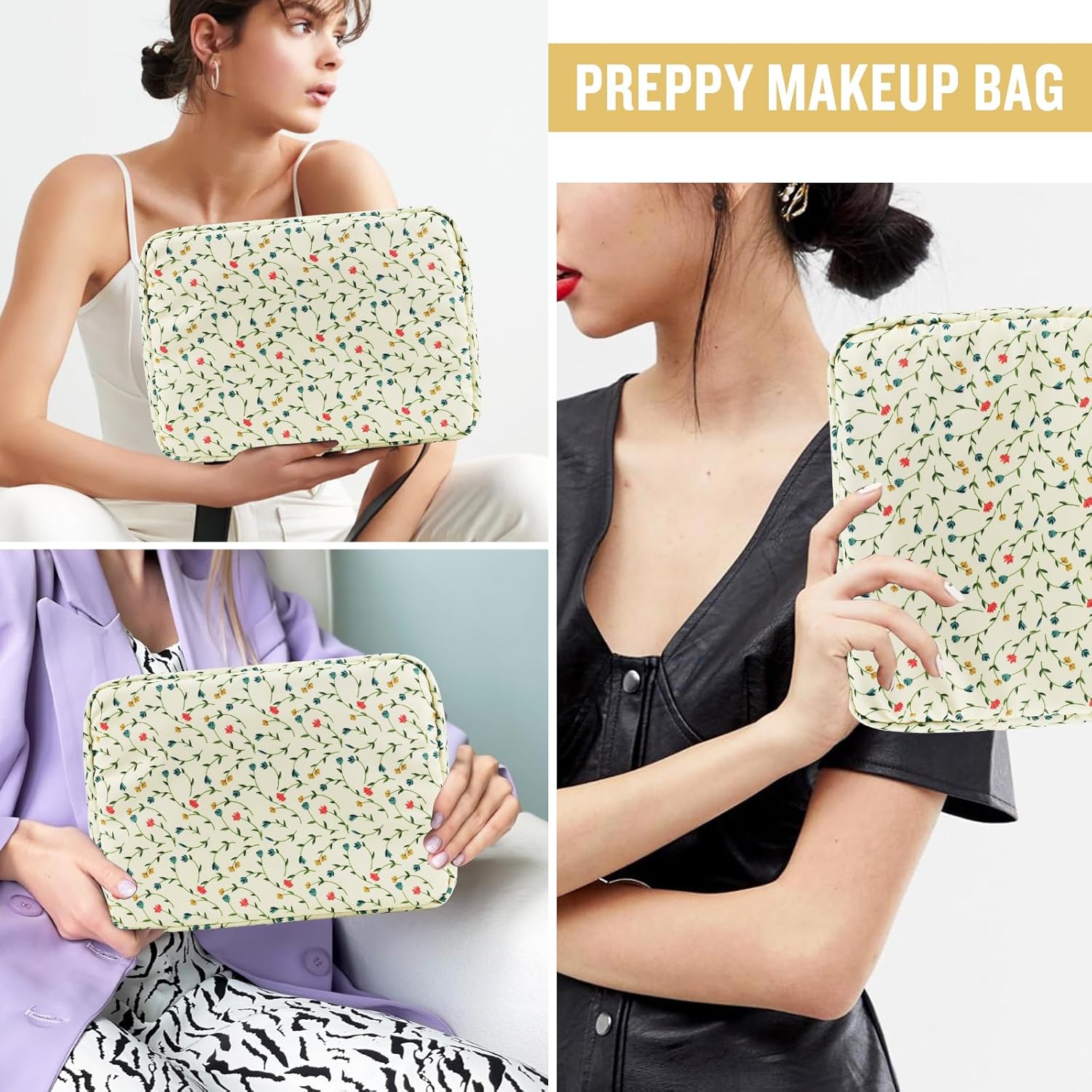 - ❤【Multiple Sizes & Colors】Large, Small, Mini, or Slim, we have it all! Cosmetic bags are available in many colors: Blue-Daisy, Green-Daisy, White-Flower, Pink-Flower and other colors for you to choose. Nylon makeup bag for purse can be used for travel, outdoors and organization, it can be used as a purse bag, travel pouch, clutch, makeup organizer and more.