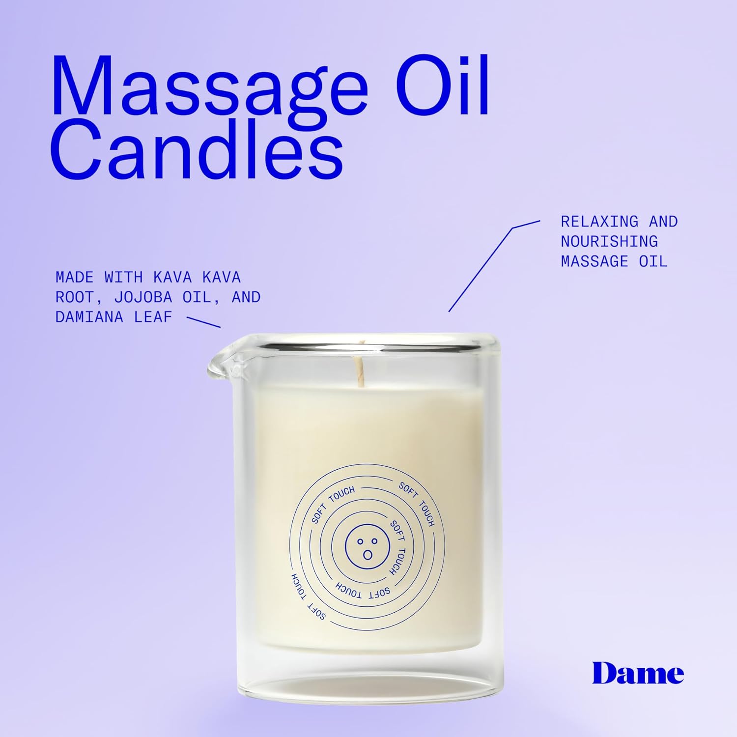 Dame Products Massage Oil Candle - Plant-Based with Kava Kava - Moisturizing and Relaxing - Soft Touch Scent