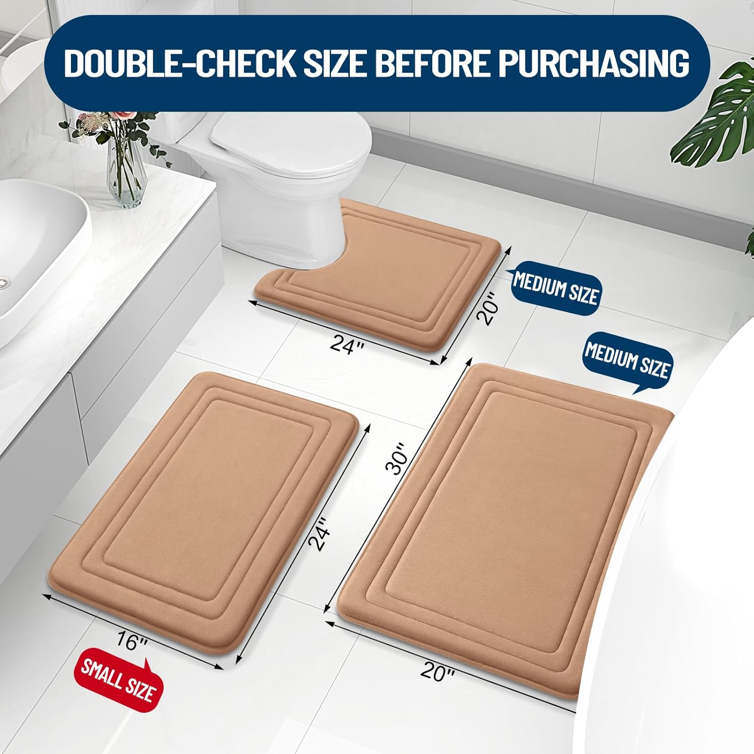 Grandaily Memory Foam Bath Mat Rug 30x20, Ultra Soft, Non-Slip and Absorbent Bathroom Rugs, Machine Wash Dry, Comfortable Bath Carpet for Bathroom Floor, Tub and Shower, Dark Beige