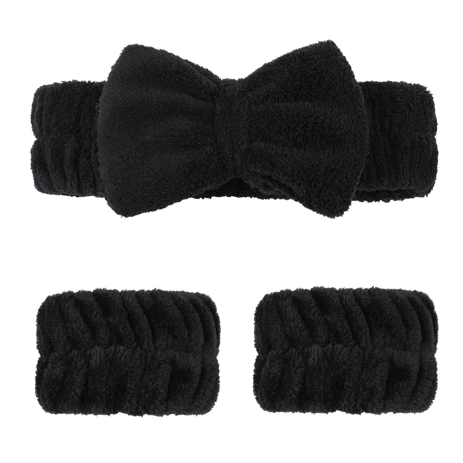 Ayesha Spa Headband and Wristband Set for Skincare Washing Face,Makeup Headband Wrist Cuffs for Preppy Skincare Women Girl(Black set)