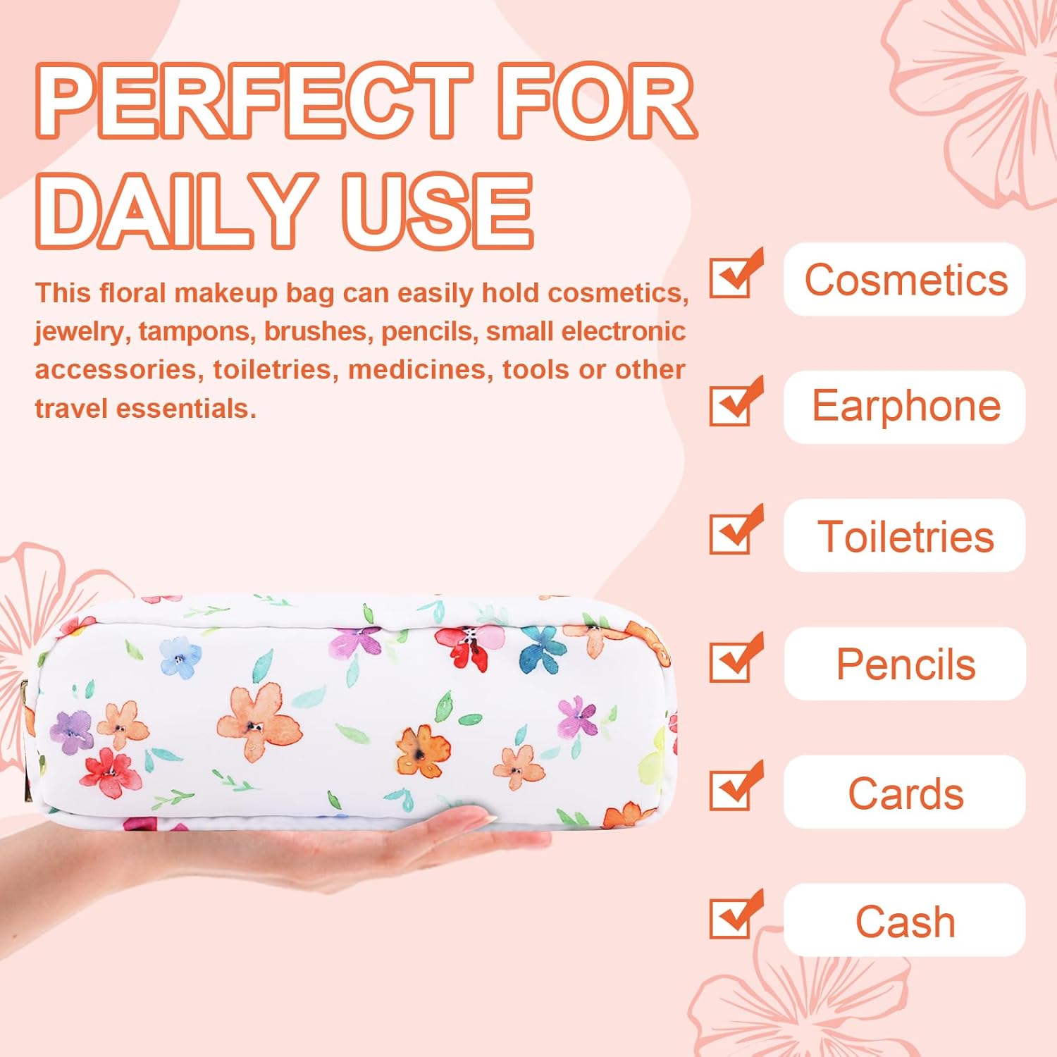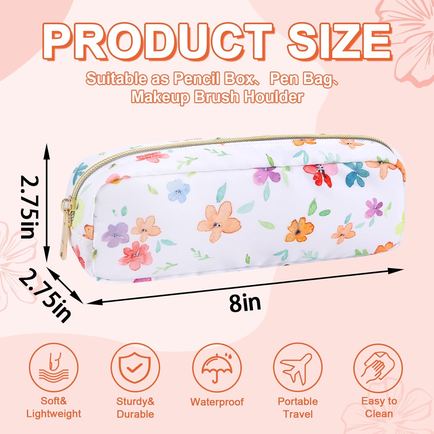 Waterproof Small Floral Pencil Case Makeup Bag for Purse,Cute Flower Pencil Pouch Preppy Nylon Makeup Brush Holder with Zipper,Girls Portable Storage Case Pen Bag for Work(Slim Colorful-Flowers)