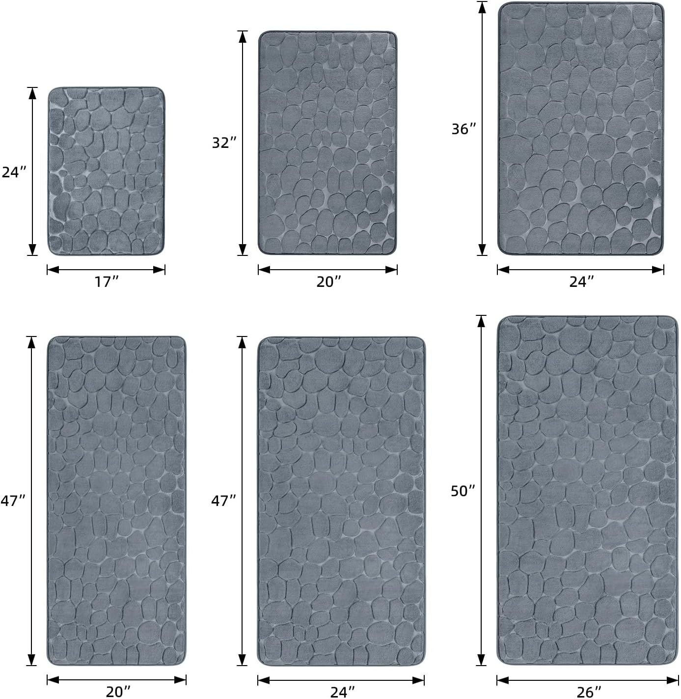 YIHOUSE Memory Foam Runner Rug, Cobblestone Bathroom Runner Rugs Super Water Absorbent Bath Mats for Bathroom Machine Washable Bath Rugs Runner for Hallway Bedroom Laundry Room(26 x 50,Dark Gray)