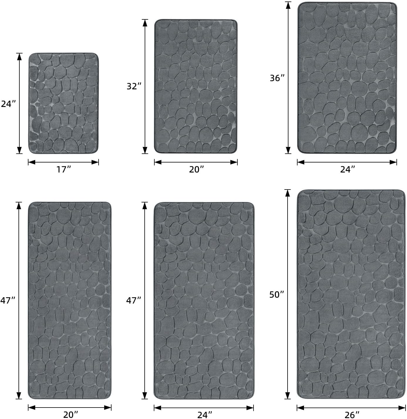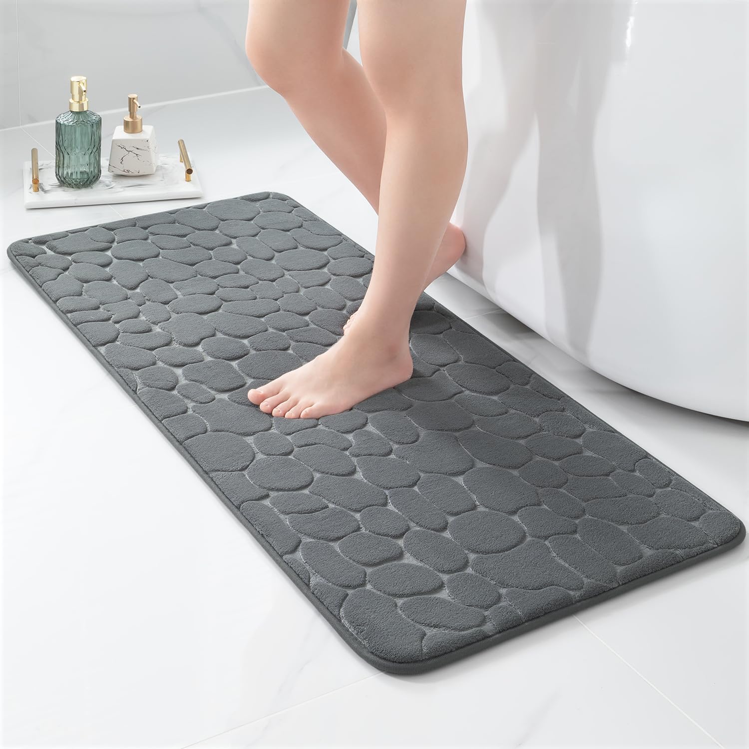 YIHOUSE Memory Foam Runner Rug, Cobblestone Bathroom Runner Rugs Super Water Absorbent Bath Mats for Bathroom Machine Washable Bath Rugs Runner for Hallway Bedroom Laundry Room(20 x 47,Dark Gray)