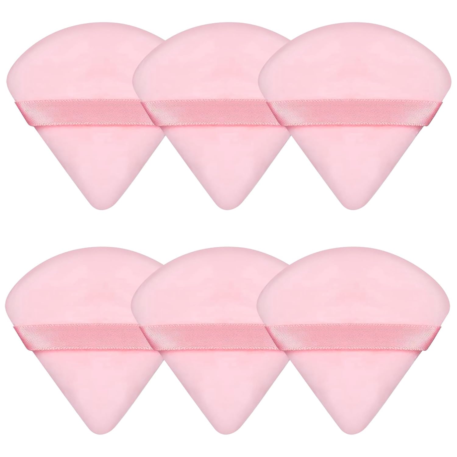 6 Pieces Pink Powder Puff Face Soft Triangle for Loose and Body Powder, Velour Makeup Sponge Set Setting Powder Puff Makeup Tools