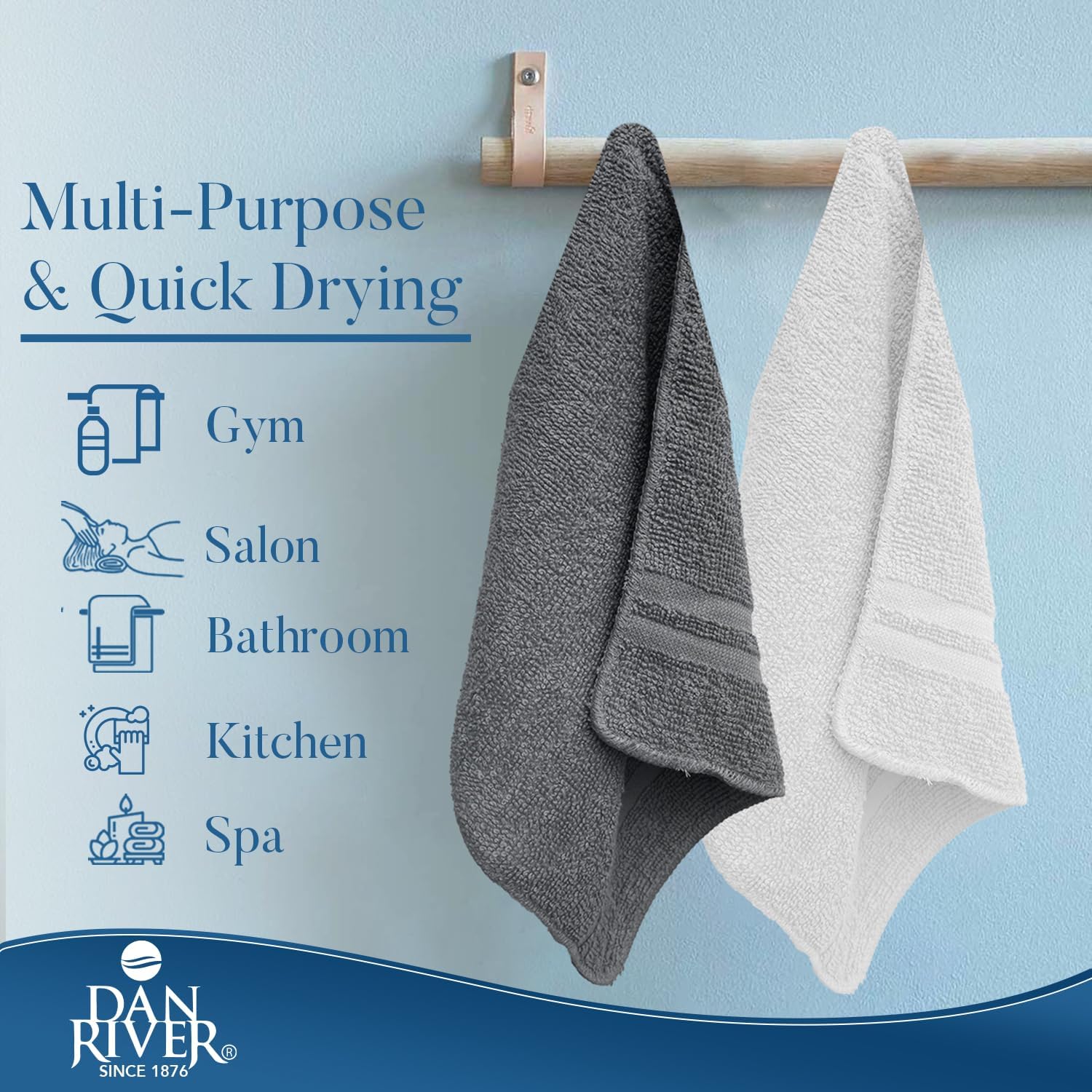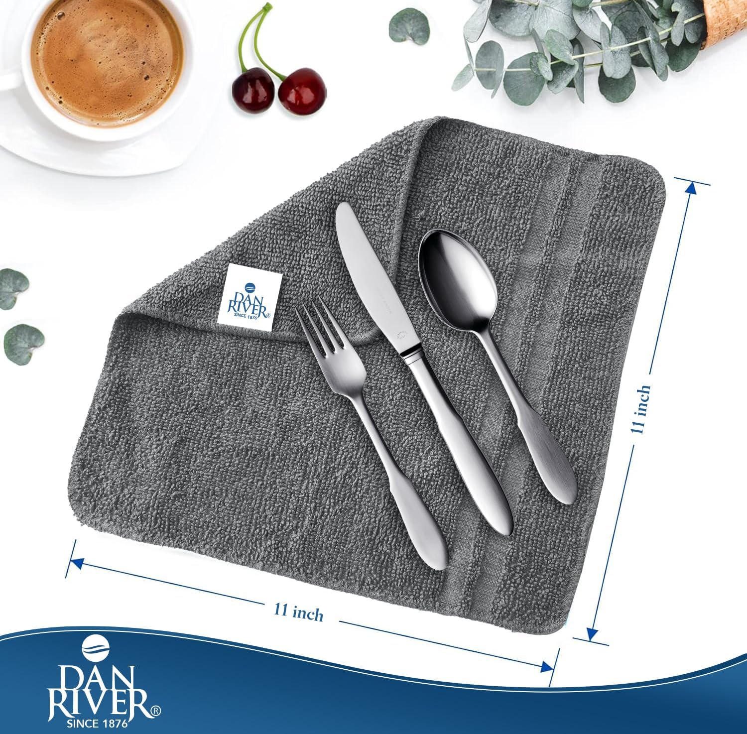 DAN RIVER 100% Cotton Washcloths 20 Pack Premium Quality Face and Body Cloth, Quick Dry Essential Towels for Bathroom, Hand, Kitchen & Cleaning, Baby Rugs | 11X11 in | 400 GSM | Grey + White