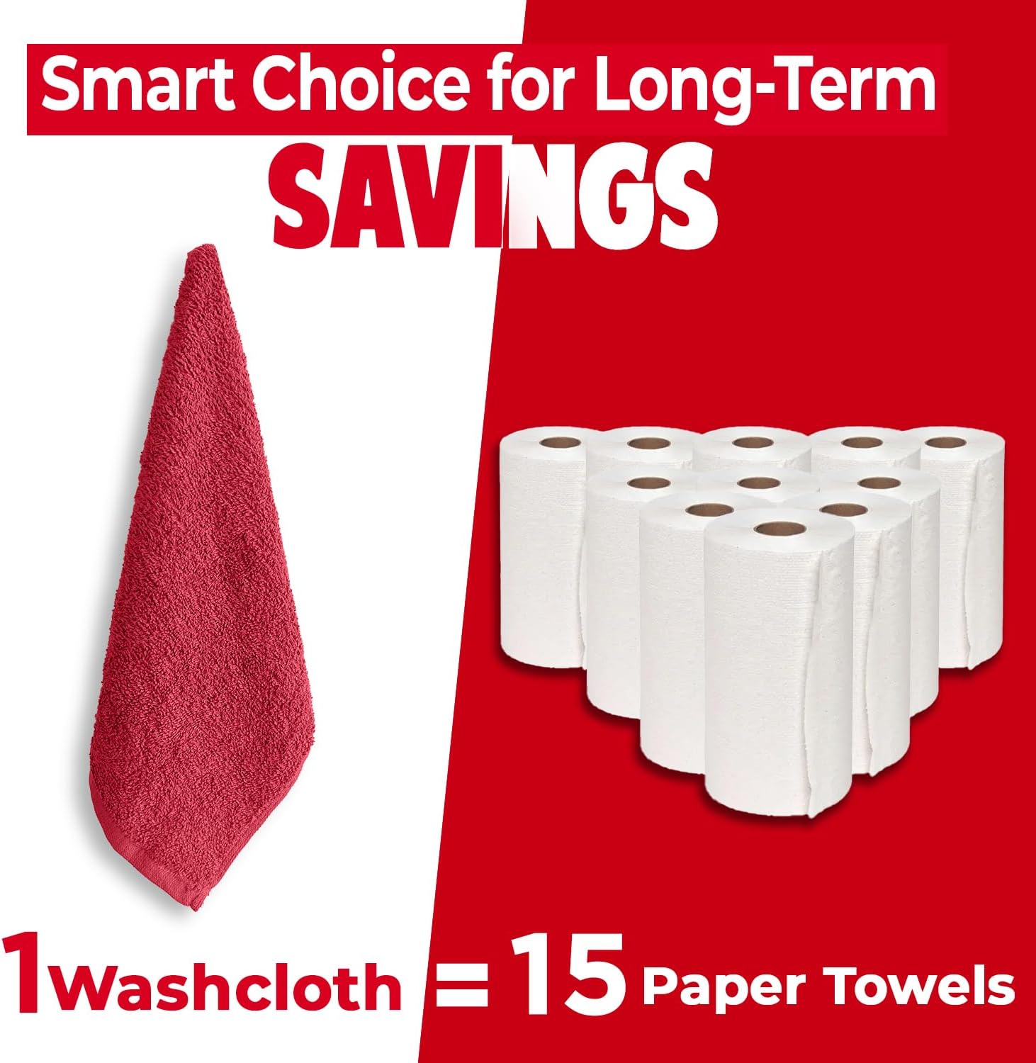 DAN RIVER 100% Cotton Wash Cloths 12 Pack [12x12] Soft & Absorbent Bath wash Cloths, Gym, Hotels & Spa Perfect for Everyday Use Fingertip Towels, Red
