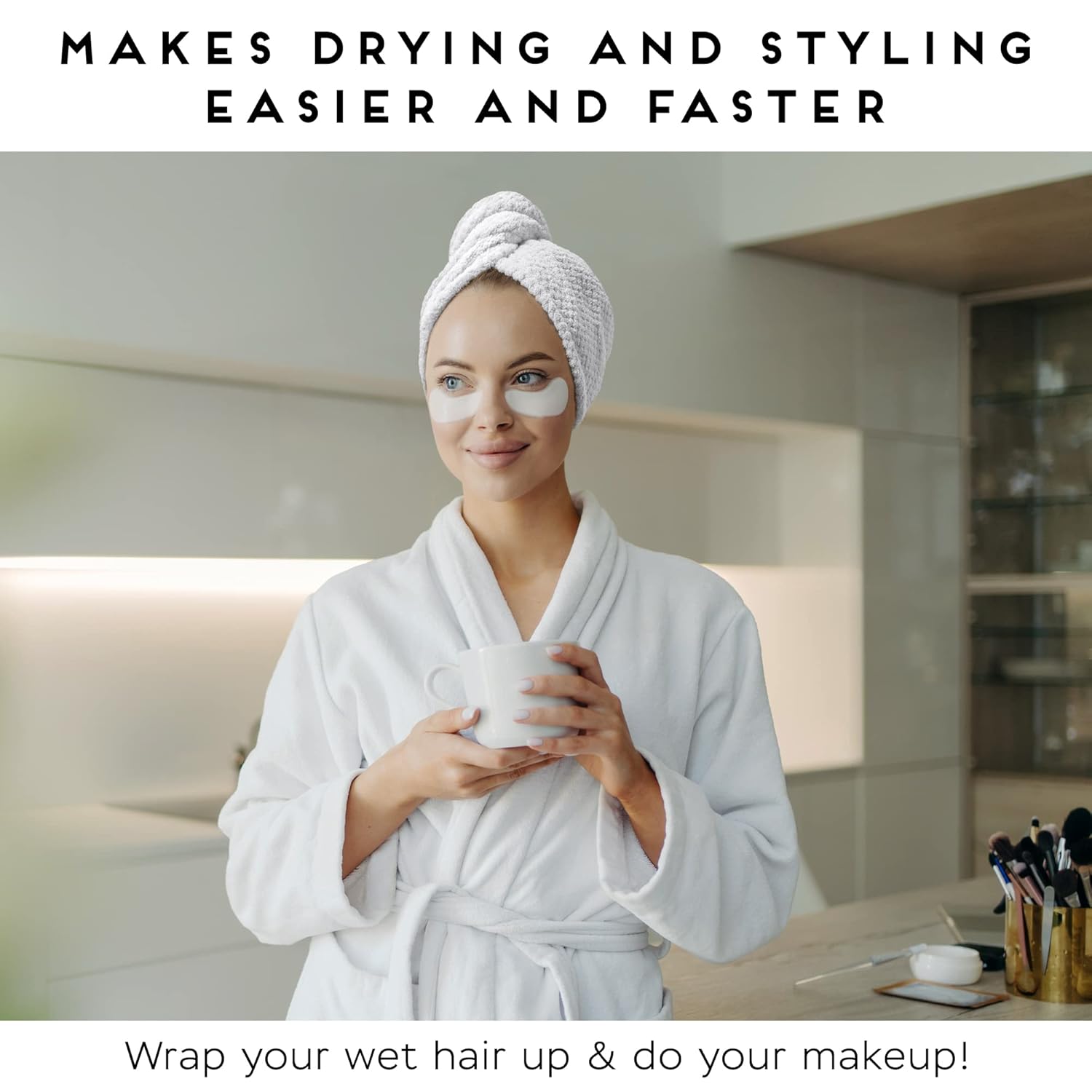 - Makes drying and styling easier and faster. Wrap your wet hair up & Do your makeup!