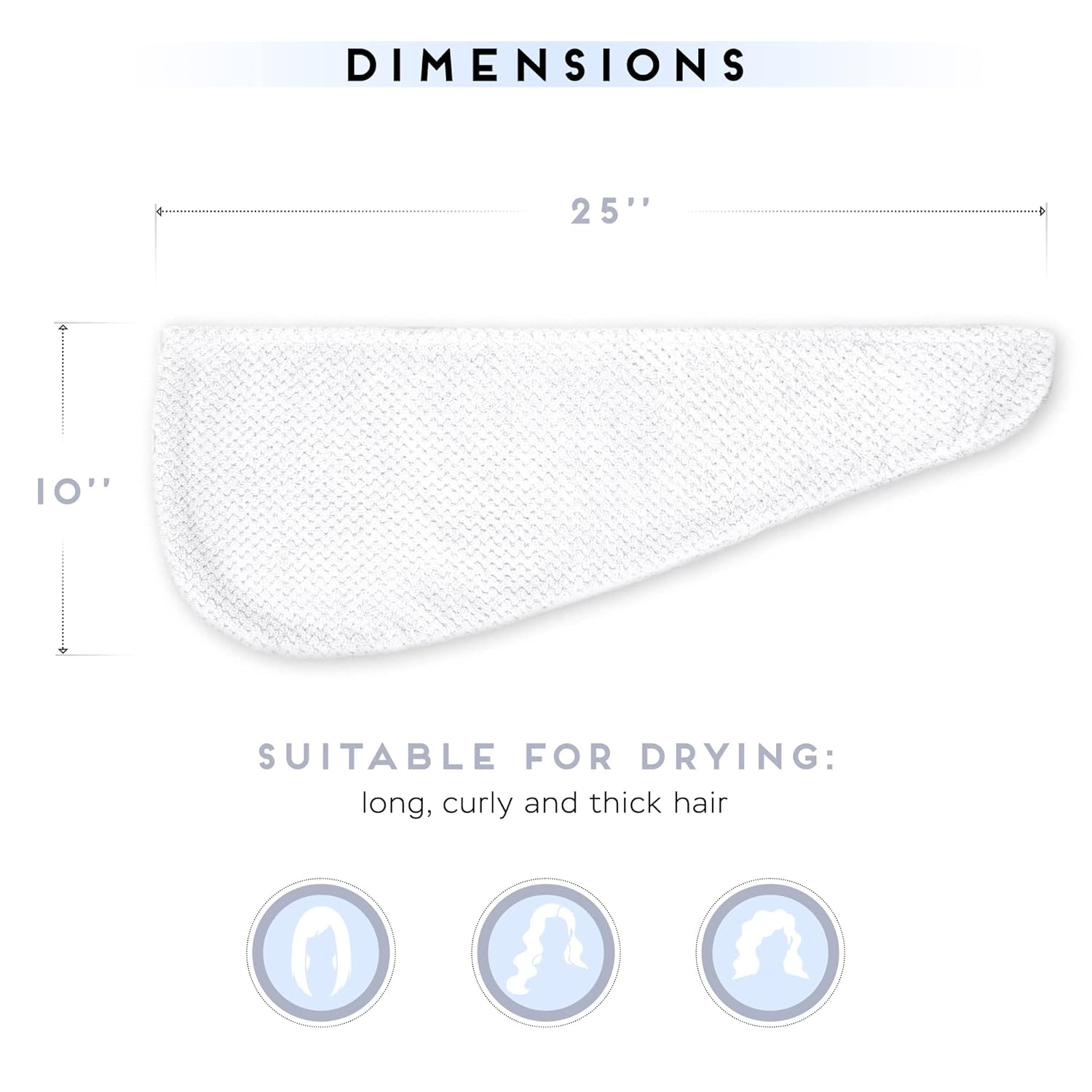 - The hair towel warp is made from ultra absorbent microfiber material, helping to reduce hair frizz and split ends. Great for curly hair.
