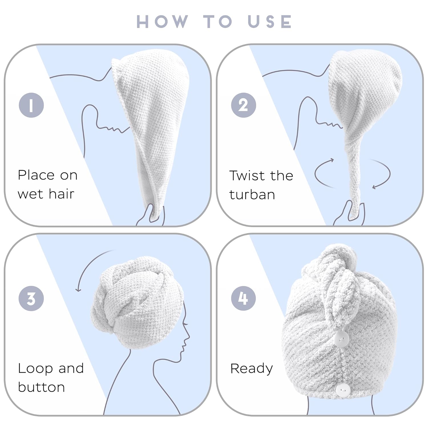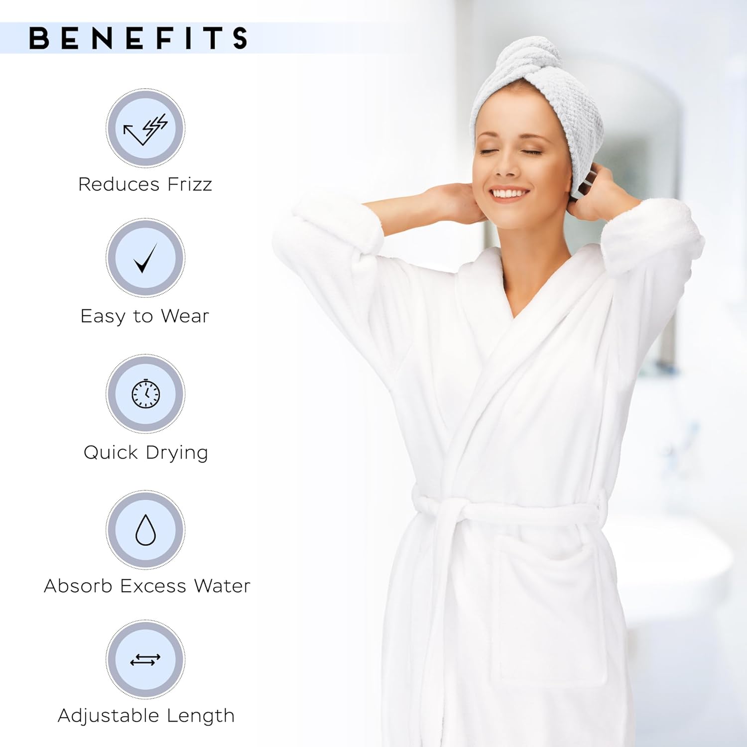 2 Pack Microfiber Hair Towel Wrap for Women, Anti Frizz Quick Drying Hair Turban for All Hair Style, Absorbent and Lightweight (Bright White)