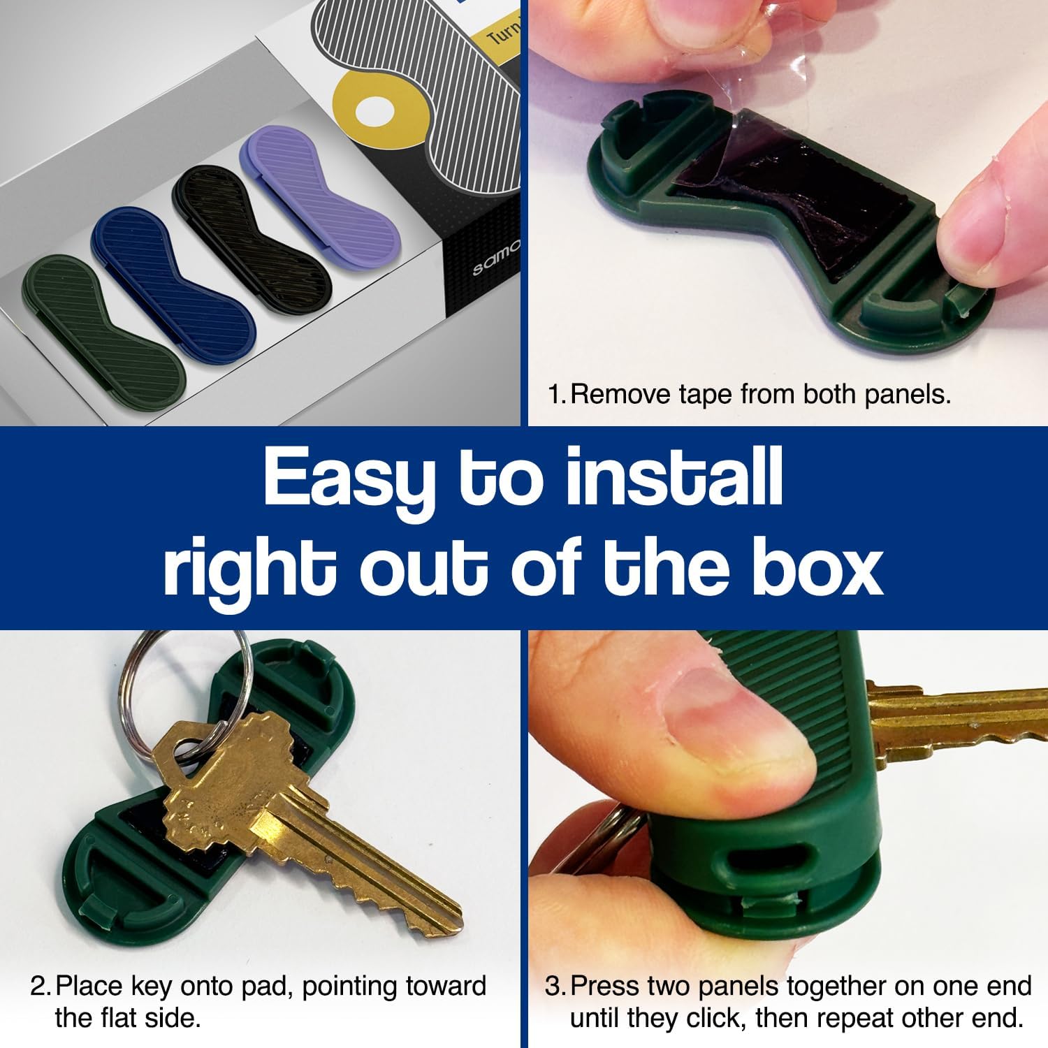 - Easy Assembly For A Permanent Solution: KeyGrip arthritis aids are intended to be a permanent fix for identifying and turning your keys. Ready-to-assemble out of the box, install KeyGrip by removing the tape from both panels, place your key onto the sticky pad with the key pointing toward the flat side, and click the panels together on one side and then the other. KeyGrip is designed to provide a little wiggle room for your key so you can jiggle it in a lock if needed
