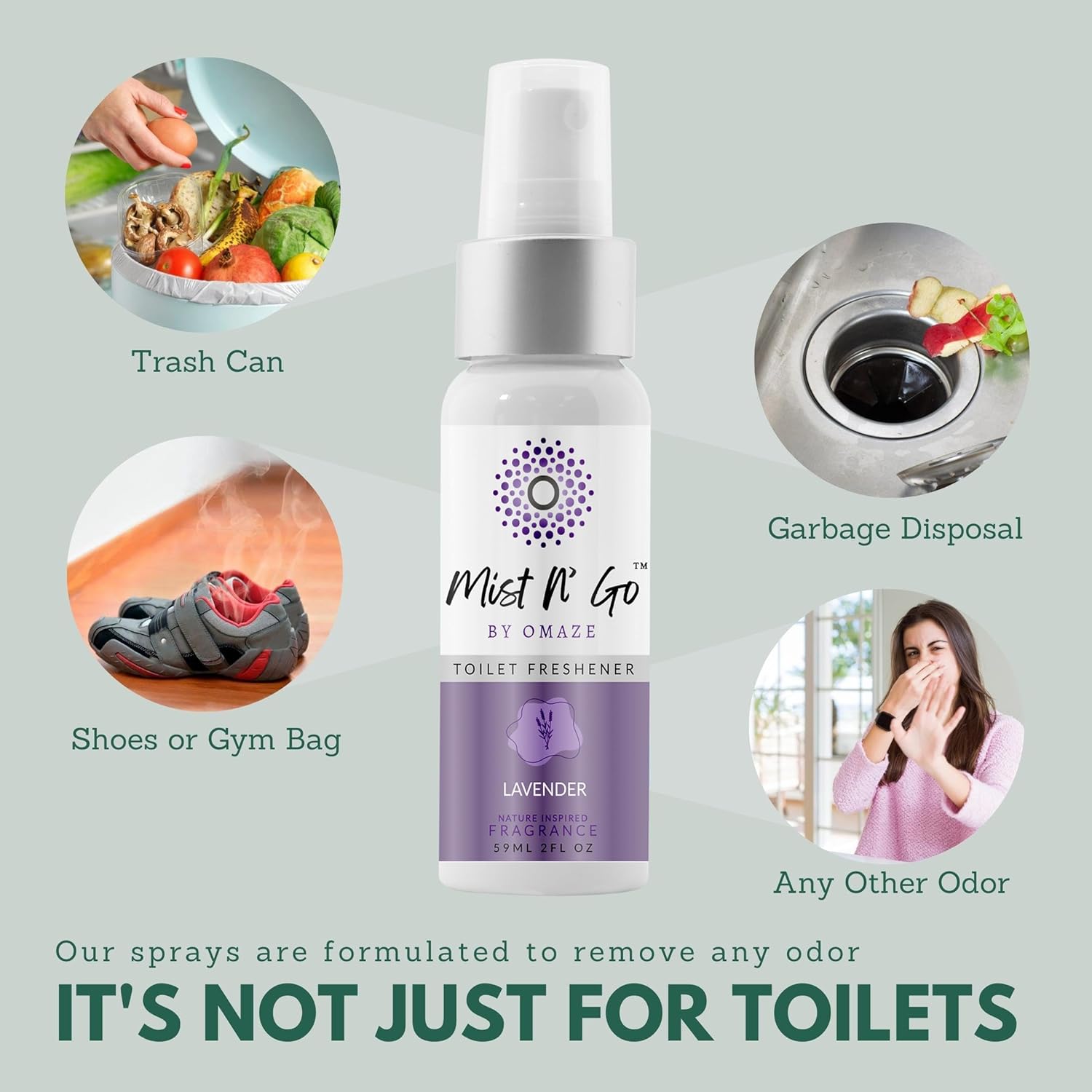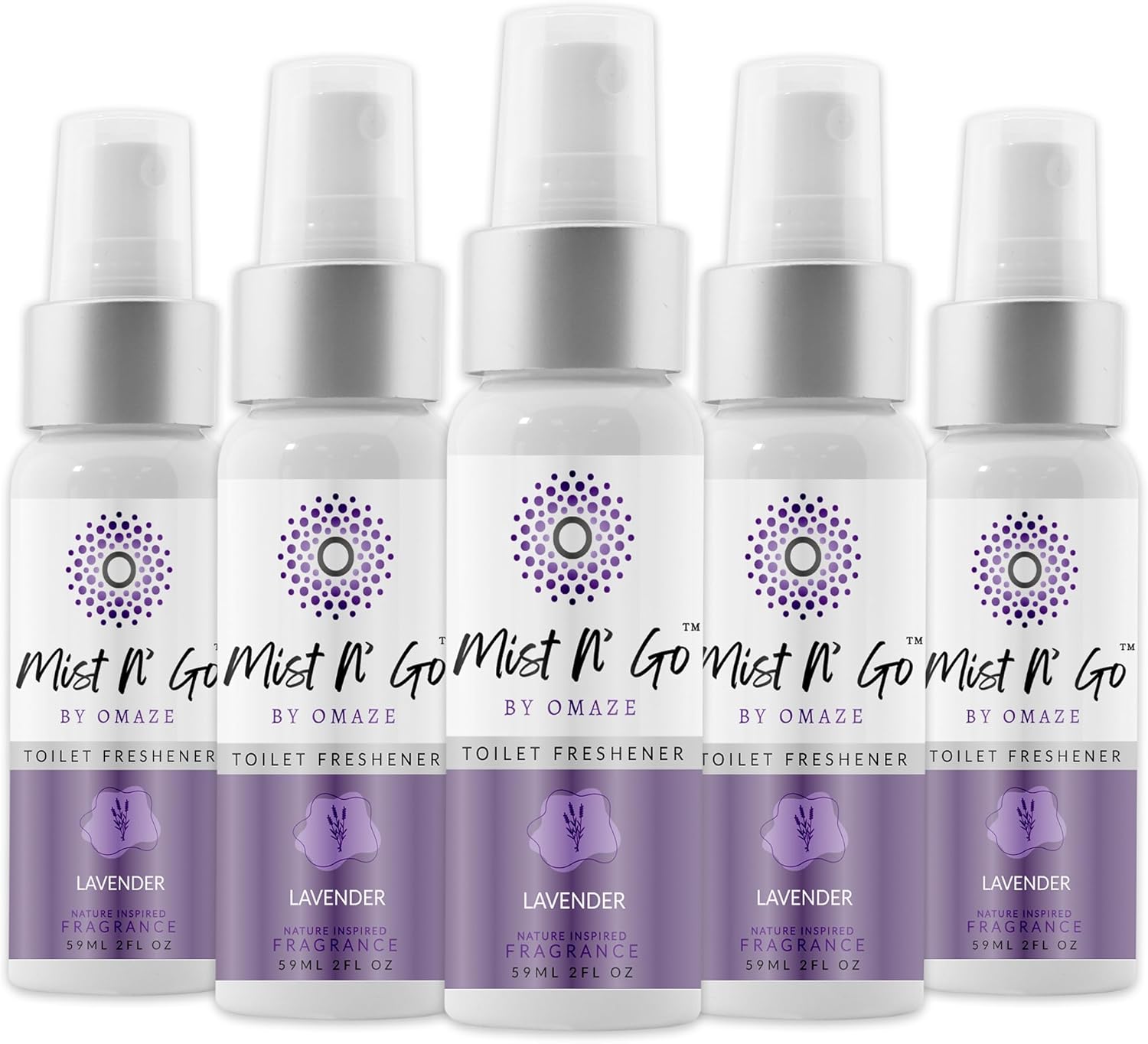 Mist N’ Go by Omaze Travel Bathroom Spray for Toilet Spray Odor Eliminator - Travel Toilet Spray for Bathroom Air Freshener Spray for Bathroom Deodorizer - Lavender Regular Size (2oz x5)