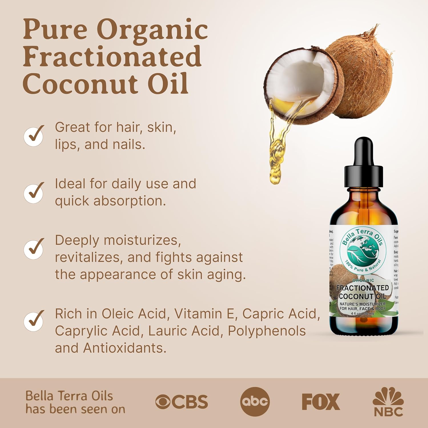 - ✔️ [Superior Hydration]: Fractionated Coconut Oil, also known as MCT Oil, deeply moisturizes and softens skin without feeling greasy.
