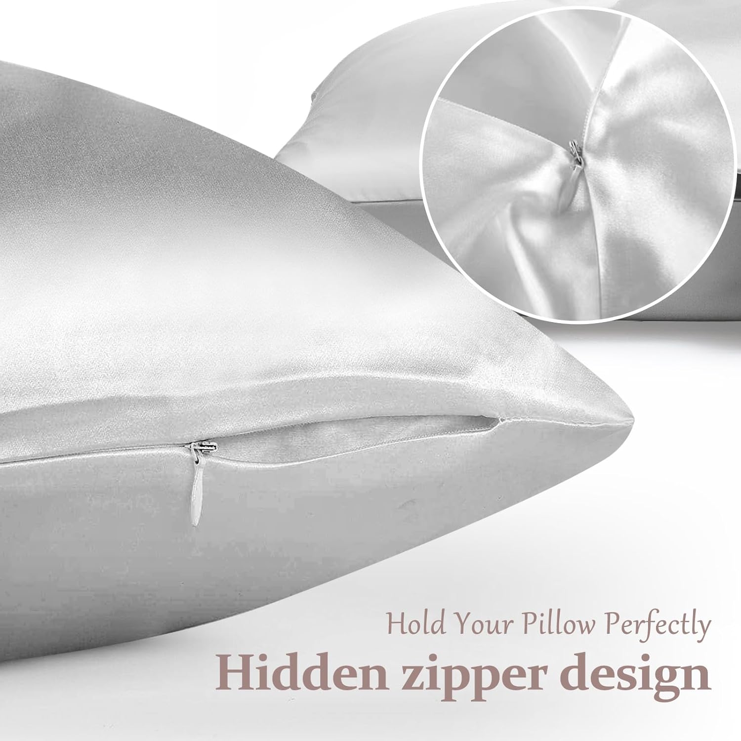 2 Pack 100% Pure Silk Pillowcase for Hair and Skin, Both Sides Mulberry Silk Pillowcases with Hidden Zipper, Cooling Pillowcase 19 Momme, 600 Thread Silk Pillow Cases Queen Size, Gray