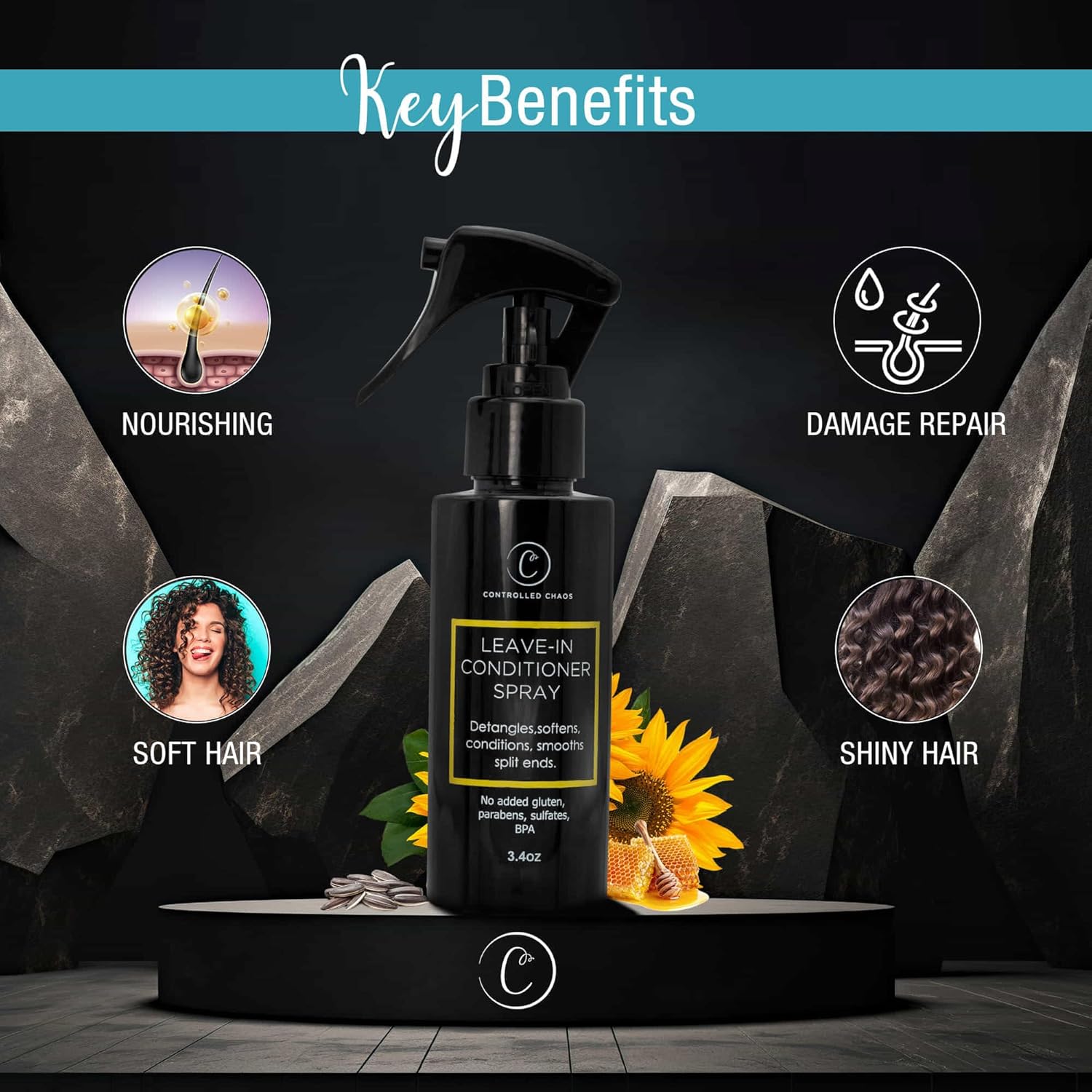 Controlled Chaos Leave-In Conditioner Spray– Anti Frizz Hair Detangler Spray for Dry Damaged Hair with Natural Watermelon & Sunflower Seed Oil & Honey – Non-Greasy, Gluten, Sulfate & Paraben Free