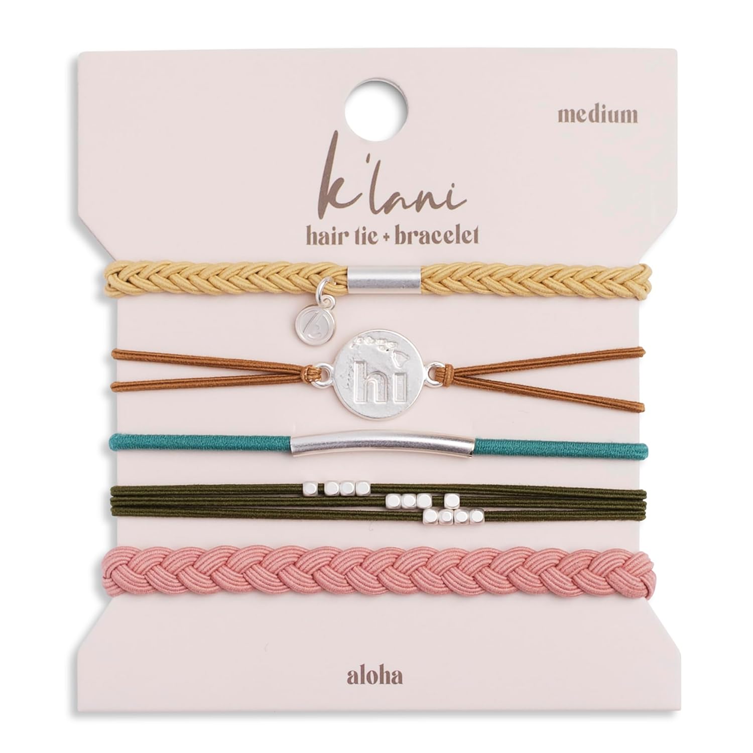 K'lani Hair Tie Bracelets for Women - Elastic Hair Bands That Double as Stylish Jewelry - Aloha - Medium