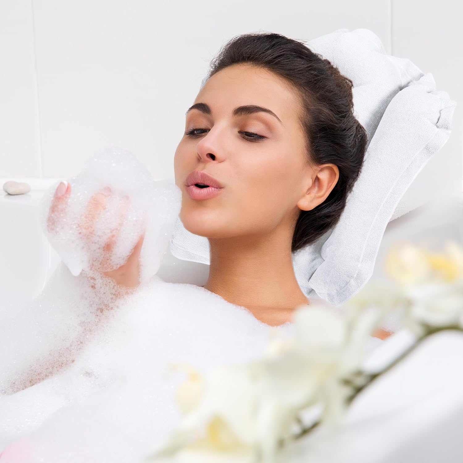 - Color: White; Overall Size: 51 x 38cm / 20 x 15 inch (L*W); Package Content: 1 x Inflatable Bath Pillow