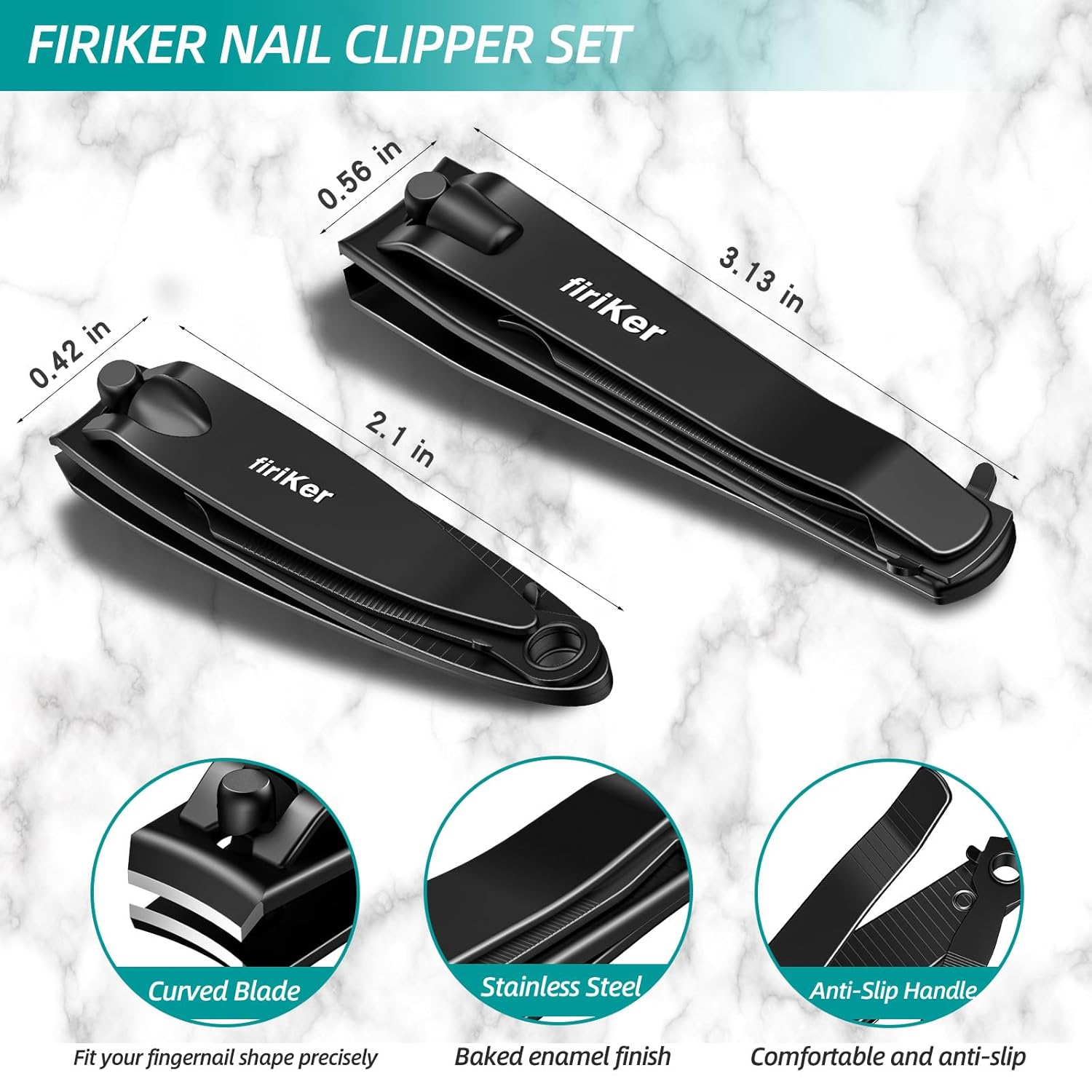 - 【Simple & Efficient Nail Trimming】The curved edges of the firiKer nail clippers follow the natural shape of nails and can trim accurately according to shape of your nails. The nail trimmer is suitable for various nails, making nail cutting smooth and simple.