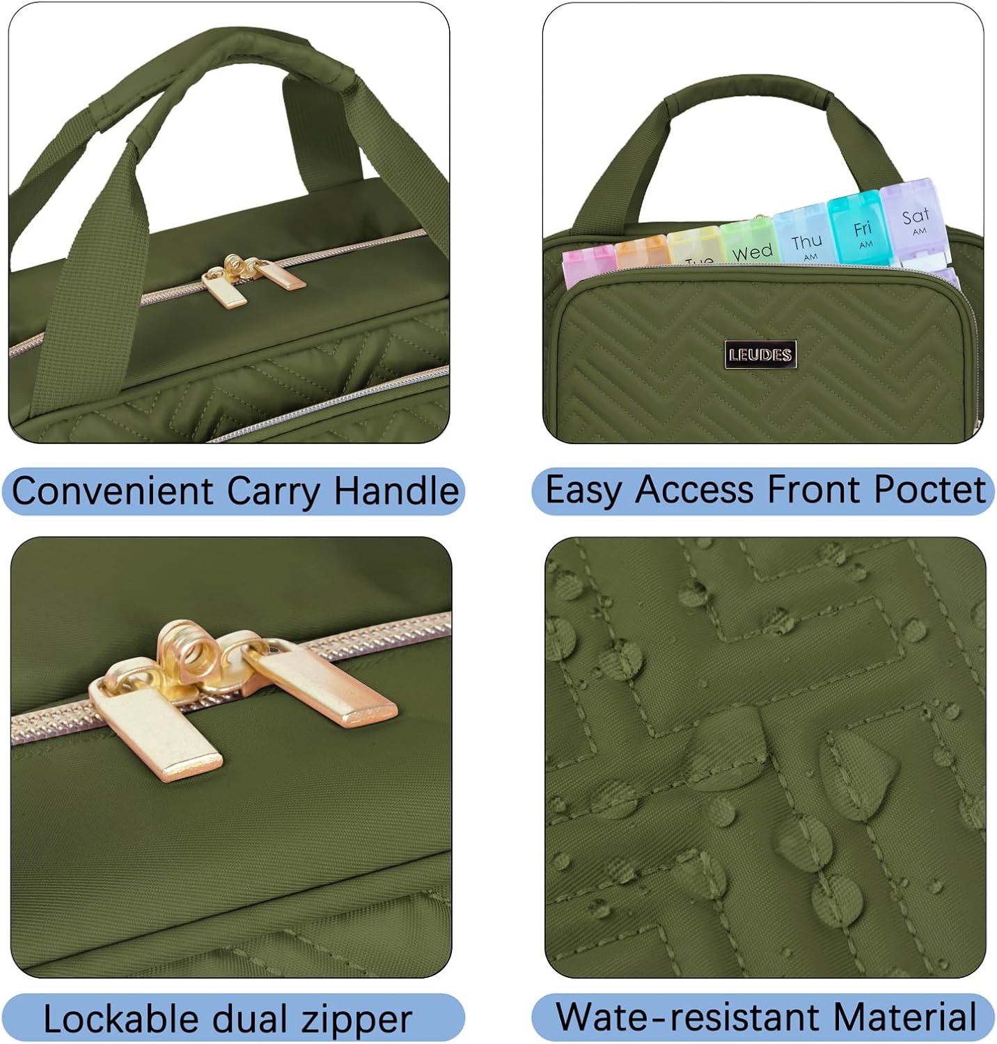 Leudes Travel Pill Bottle Organizer,Medicine Organizer and Storage,Home Medication Bag, Cases,Carrier for Pills,Vitamin,Fish Oil,Supplements for Women and Men (Medium, Army Green)