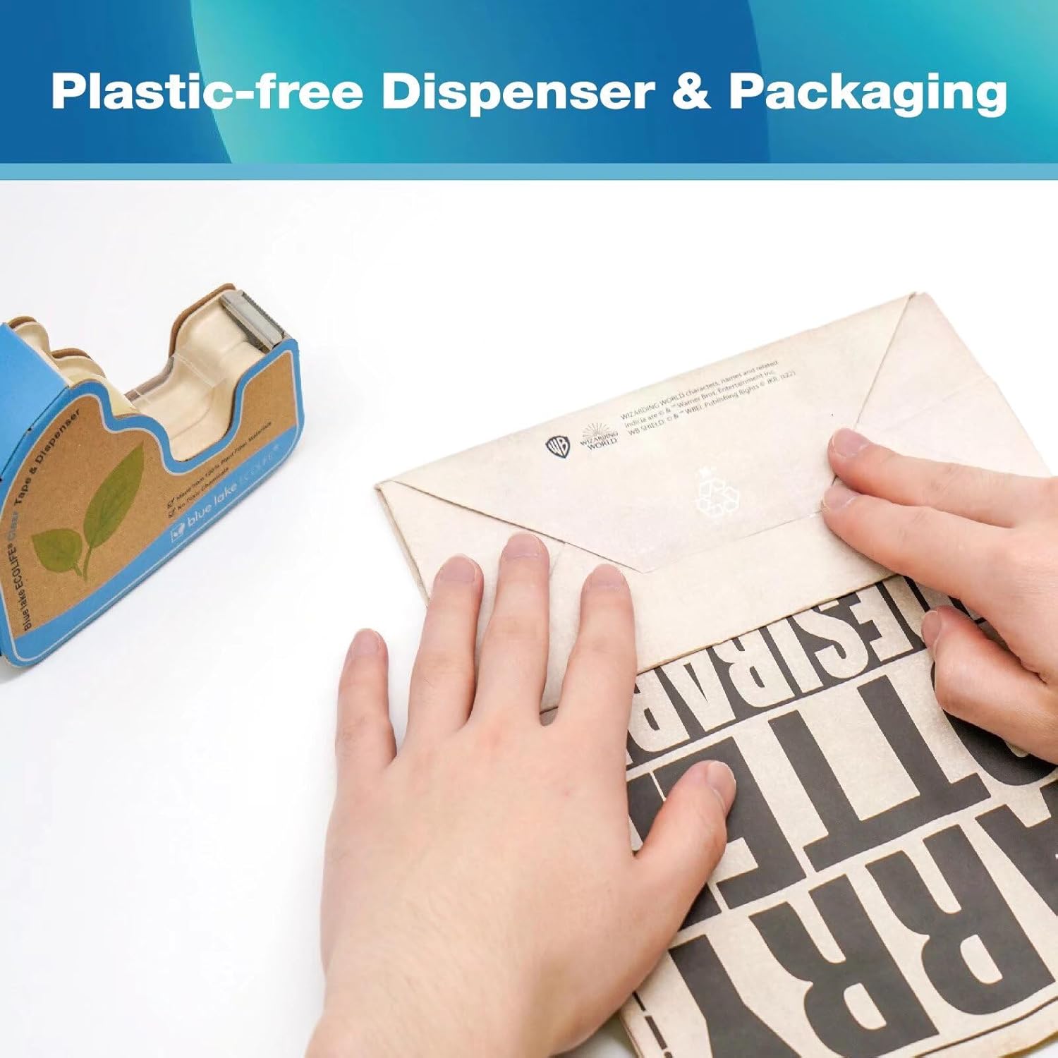 Blue Lake ECOLIFE Tape Dispenser Desk,Plastic-Free Tape Dispenser with 4 Rolls 3/4 in x 640 in Transparent Tape, Tape Dispenser Desk for Gift Wrapping, Office, Home, School