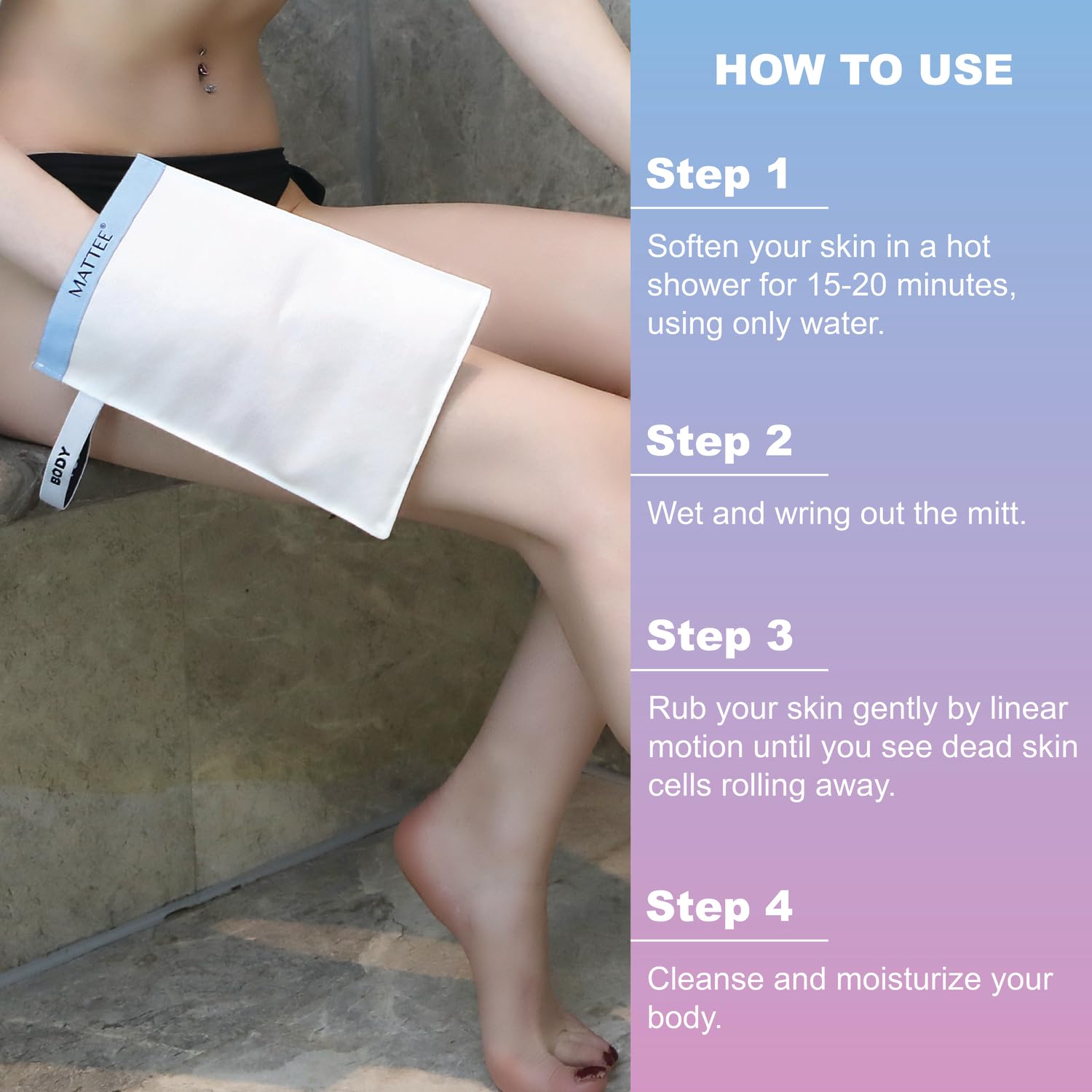 - Our korean exfoliating glove gets your skin smooth and soft, unclogs pores, helps to avoid kp bumps, ingrown hair, and razor bumps by removing dead skin cells, oil, and dirt on the outer layer of your skin. Regular use of this turkish exfoliating mitt also minimizes appearance of cellulite and improves skin elasticity by stimulating blood flow. Each body mitt exfoliator lasts 6+ months. Packaging may vary.