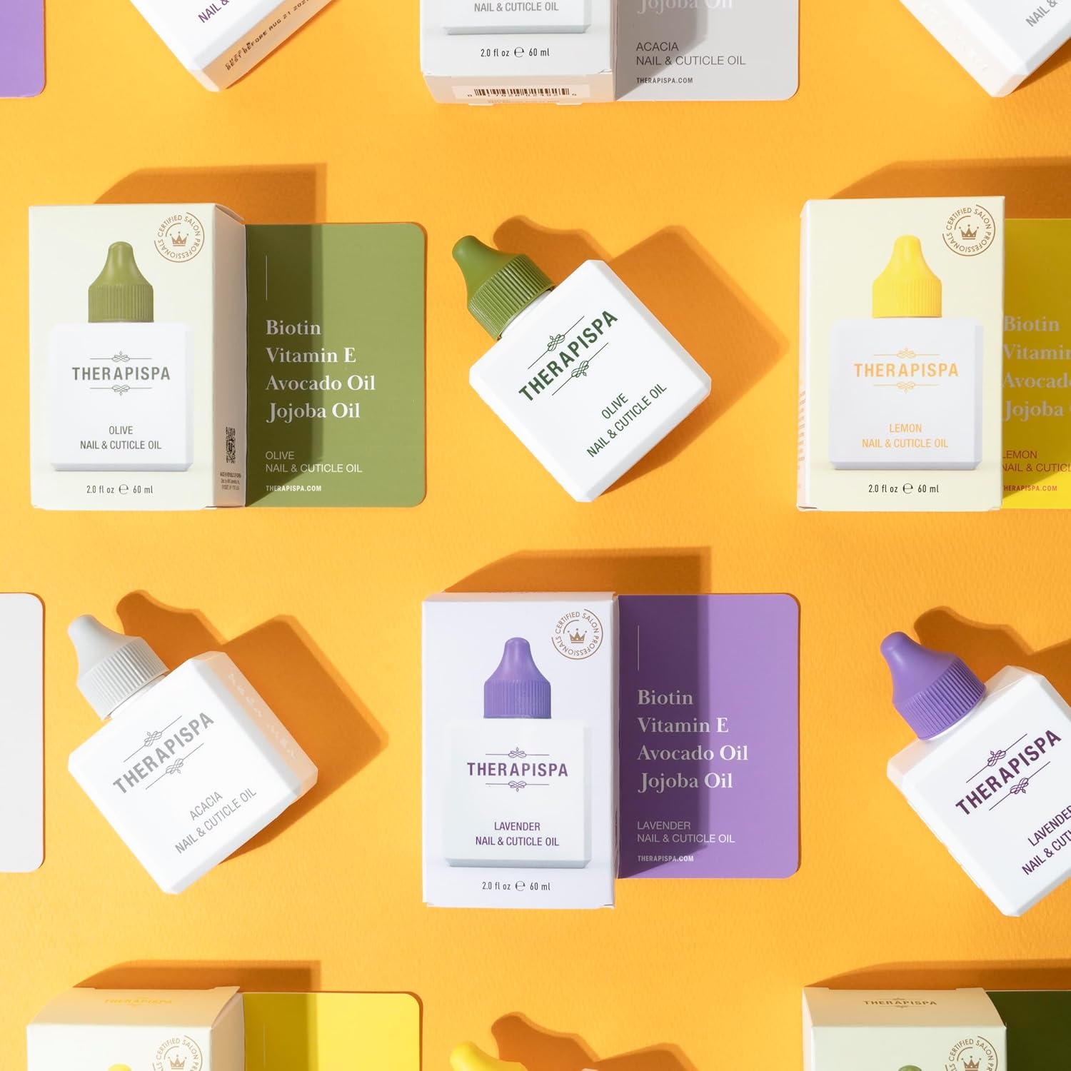 THERAPISPA Nail & Cuticle Oil with Avocado, Jojoba, Biotin & Vitamin E – Nail Growth Oil for Strengthening, Hydrating & Reviving Peeling Nails (Lemon, 2.0 fl oz)