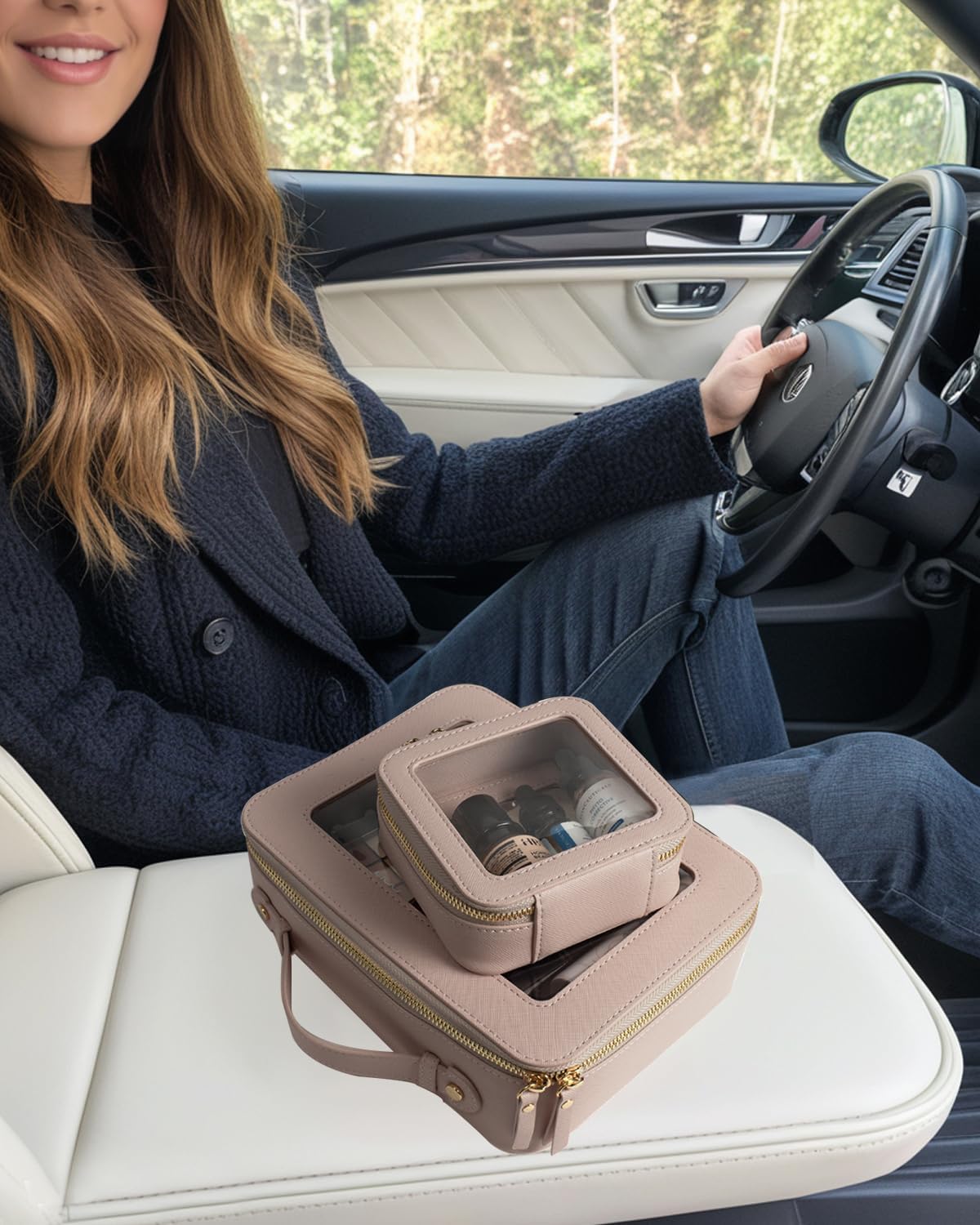 Travel Clear Makeup Bag Set, TSA Approved Cosmetic Bag Case with Zipper Portable Makeup Pouch Toiletry Bag Women Traveling Cosmetic Organizer Storage Bag Car Organizer Car Essentials for Women