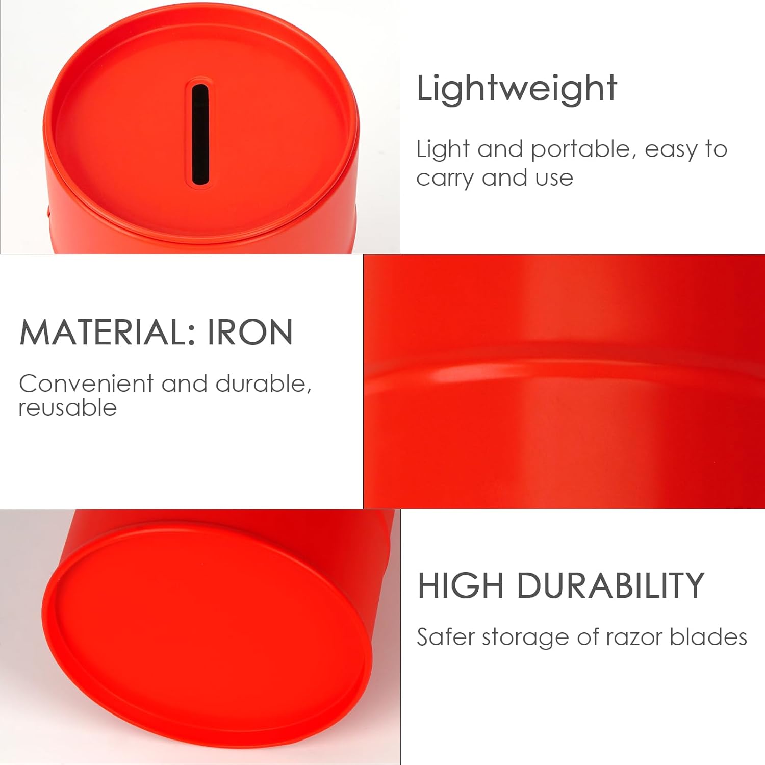 - Top opening of portable blade metal disposal case, easy to slide most blades in.