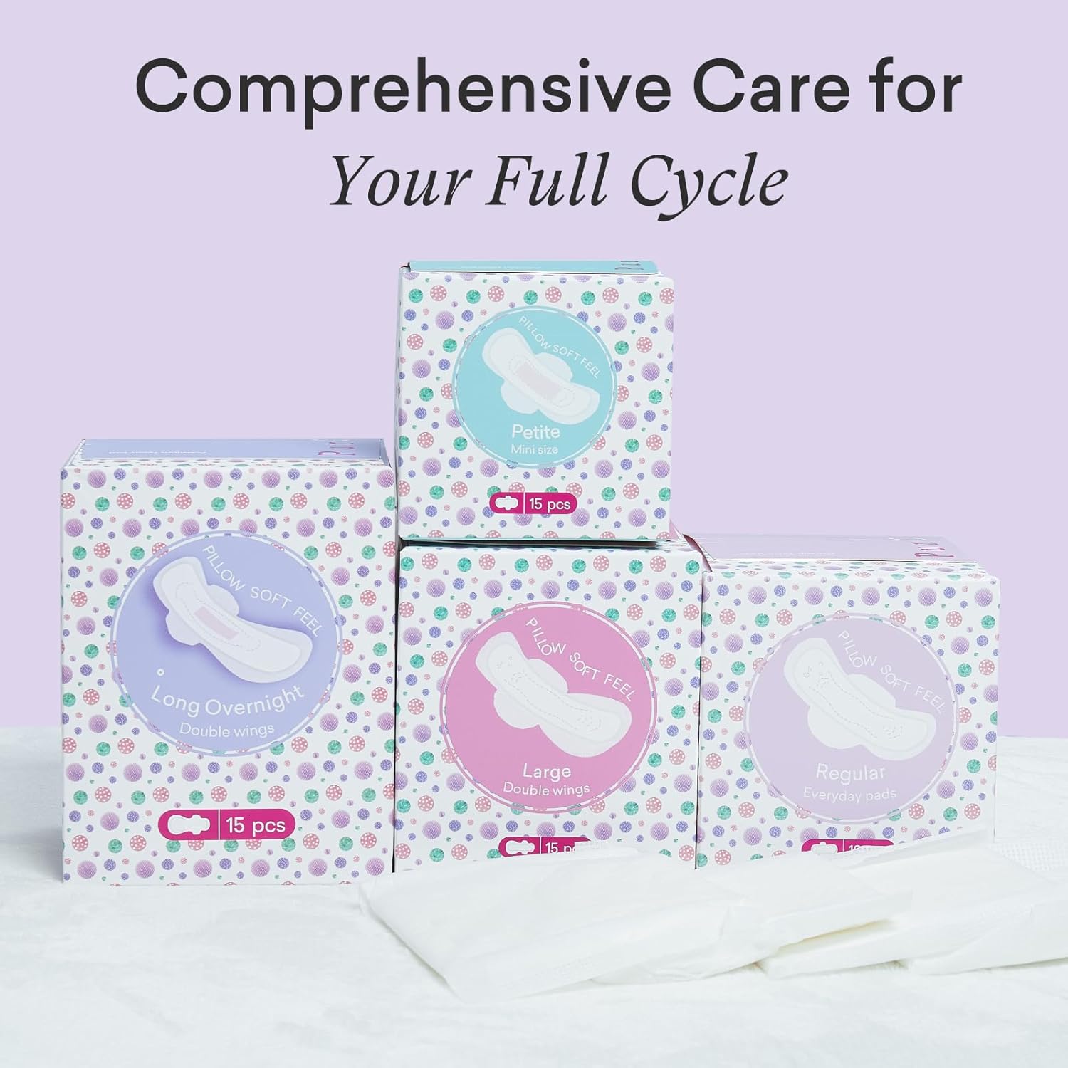 - Size Variety Galore: Purcomfy presents a diverse range of options! Alongside the 9.45-inch regular Size, we also offer the 7.5-inch petite mini size, the 11.22-inch super absorbent large size pads, and the grand 13.78-inch overnight size pads—essential tween pads and school must-haves for teen girls—catering to different needs. Whether it's day or night, whether you're active, studying, going out, or sleeping like a queen, our sanitary pads provide you with the best support.