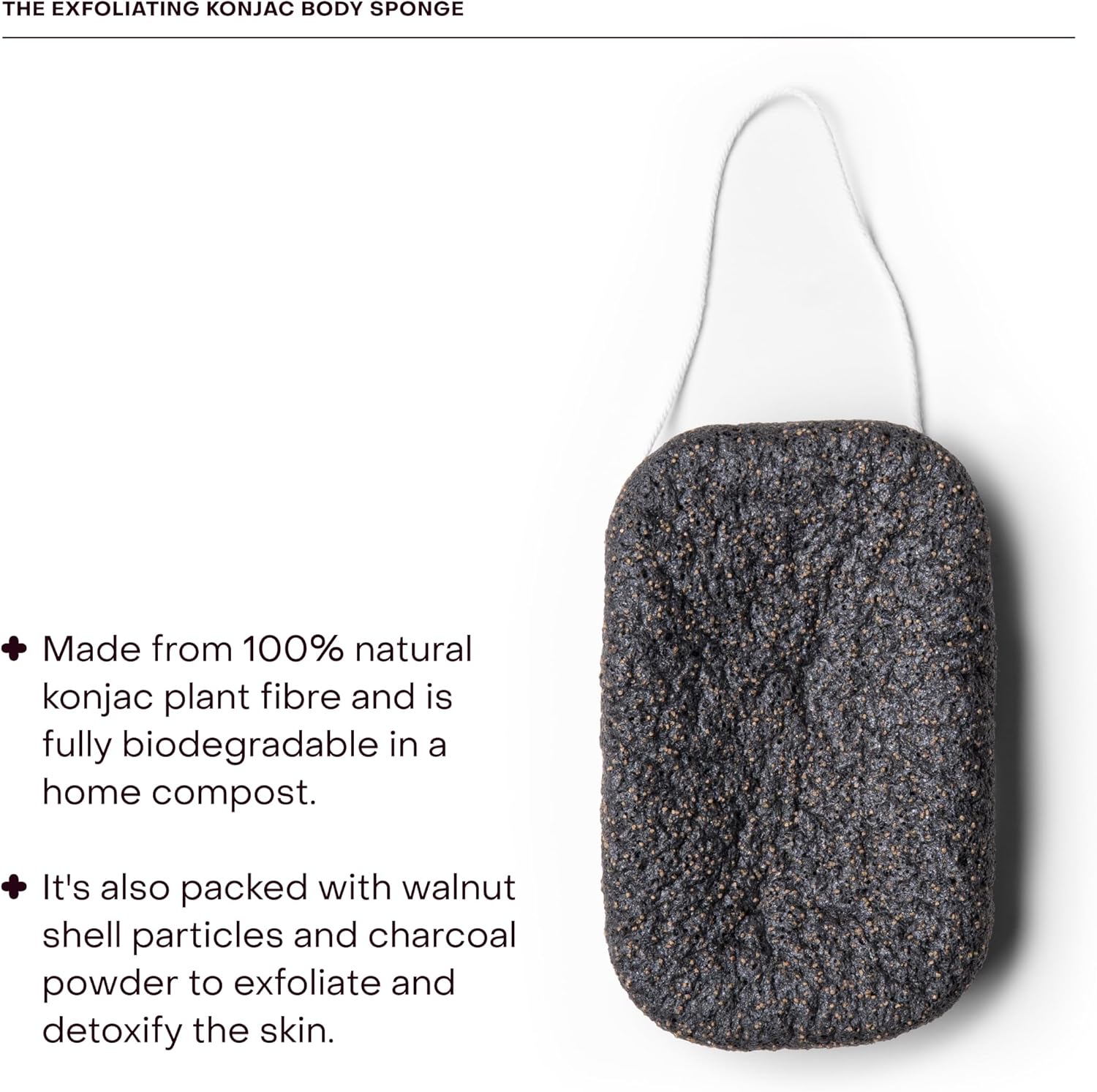 Everist The Exfoliating Konjac Body Sponge, Natural, Reusable, Compostable Bath Sponge for Sensitive Skin, Charcoal Cleansing, 60+ Uses, 1 Each