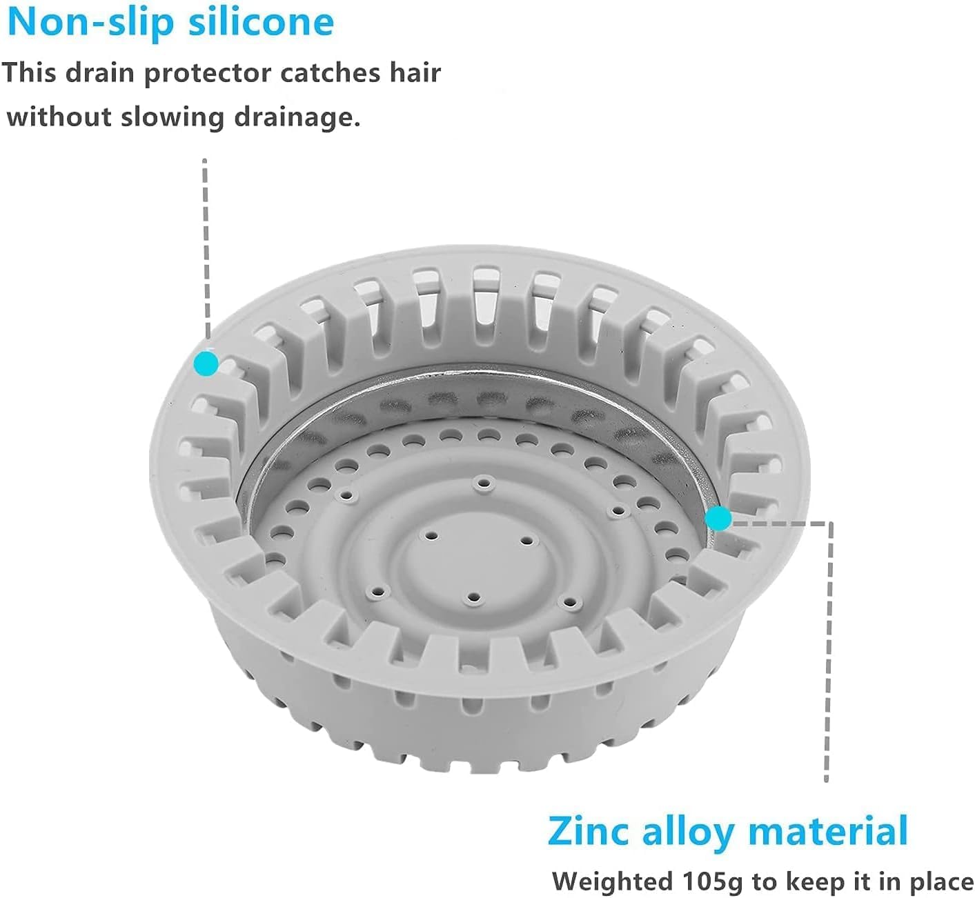 - High-quality Materials- Made of non-slip silicone and weighted zinc alloy, so that is weighted to keep the drain protector in place. this drain protector blends perfectly with the bathroom environment.
