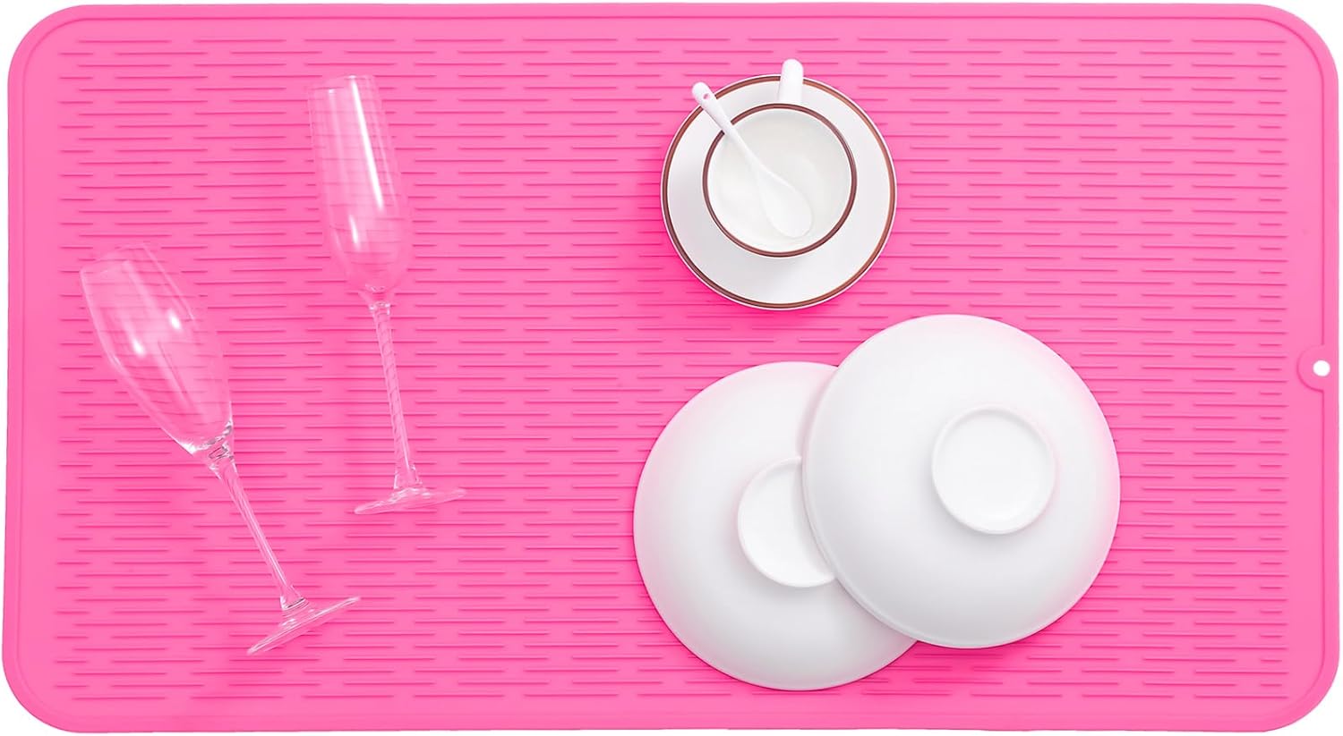 Silicone Dish Drying Mat for Multiple Usage,Easy clean,Eco-friendly,Heat-resistant Silicone Mat for Kitchen Counter or Sink,Refrigerator or Drawer Liner Rose 4XL 32 inches x 18 inches