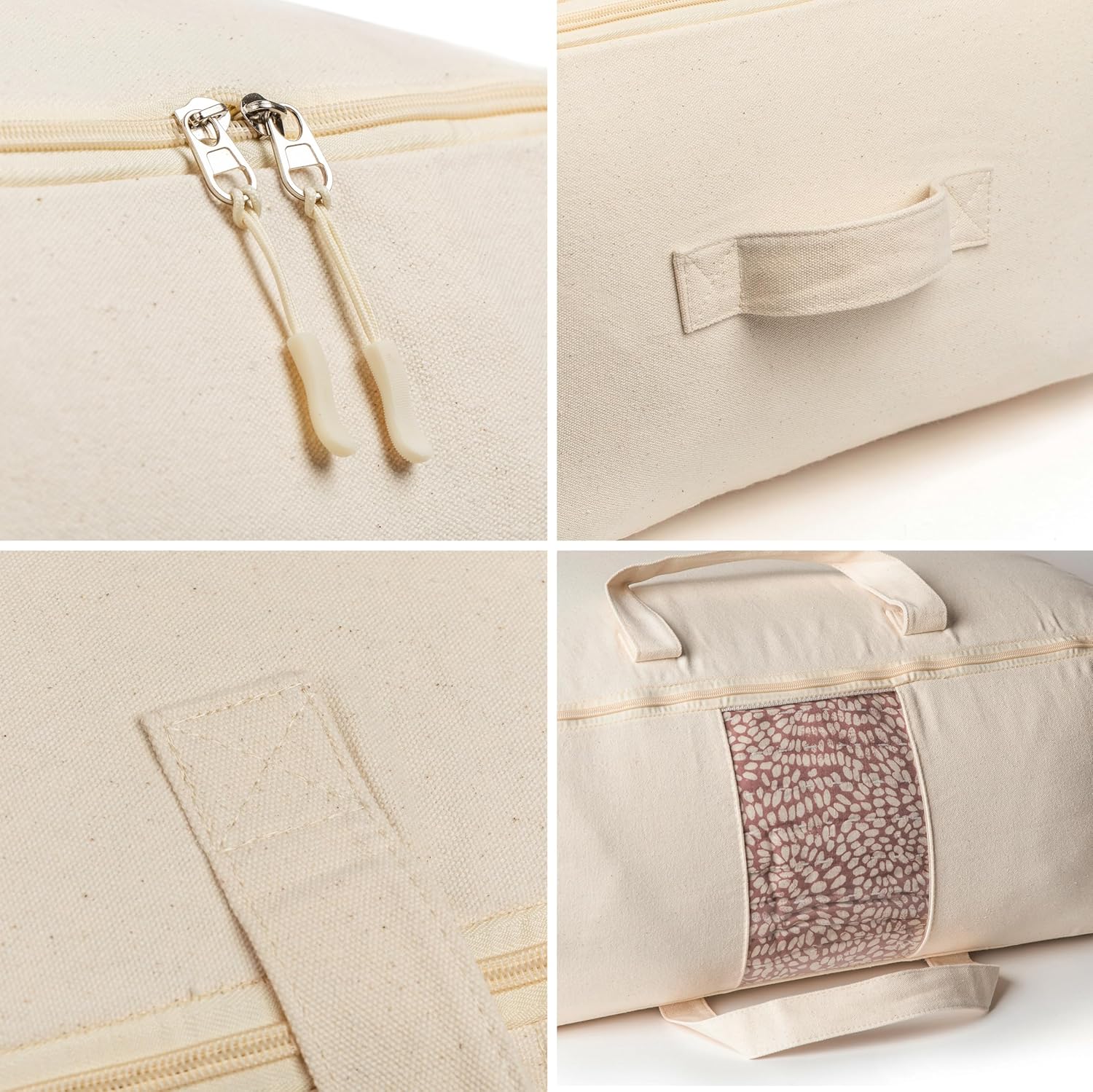 - COTTON CANVAS STORAGE WITH CLEAR WINDOW: You need to see which duvet storage or bed sheet storage is inside your case, right? So we added a scratch-resistant window to our beautiful beige canvas storage bag. This big full-sized viewing pane lets you see all your seasonal storage at a glance.