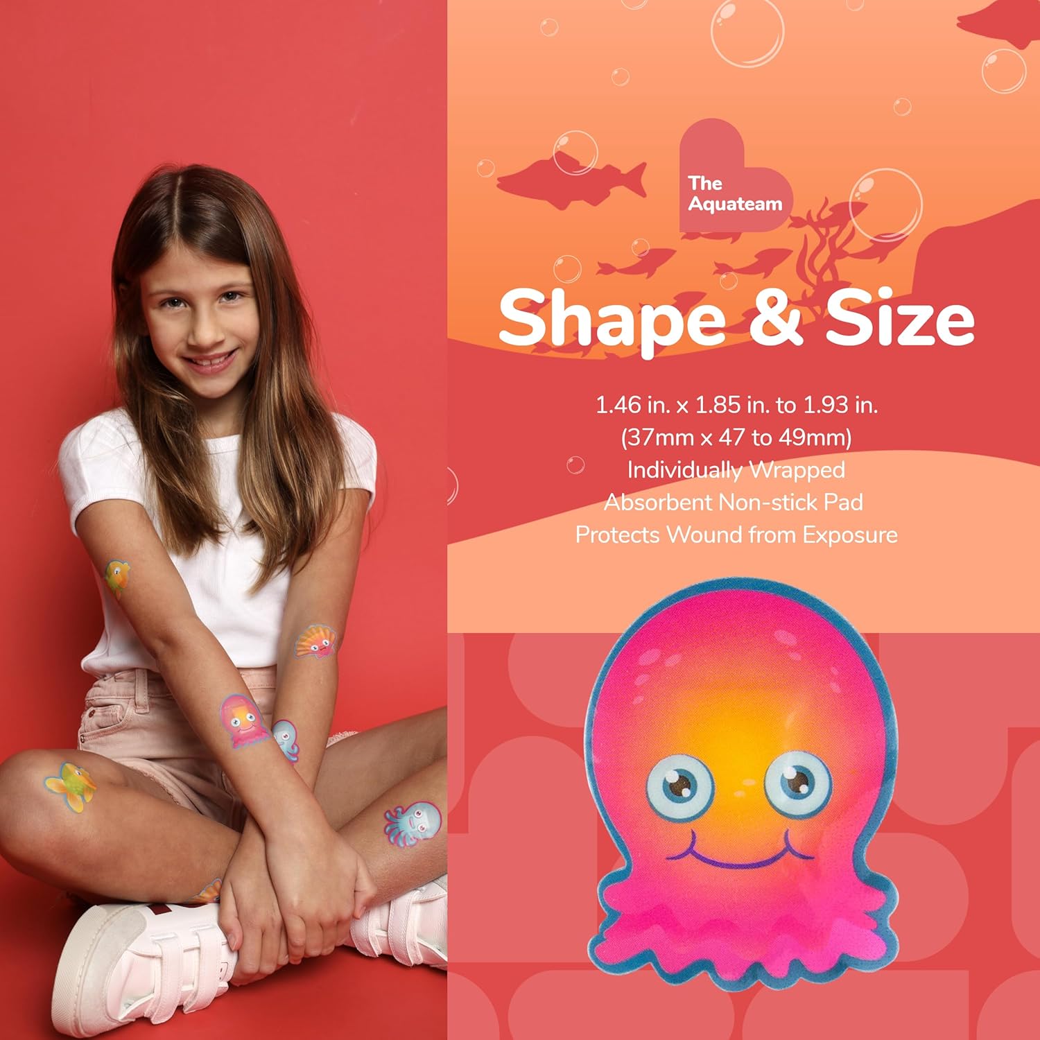 - 24 SEA CREATURE KIDS BANDAGES: Fun sea creature-shaped adhesive bandages pack helps protect cuts, scrapes, and minor wounds while making healing less stressful for children; bandages come in 4 assorted styles