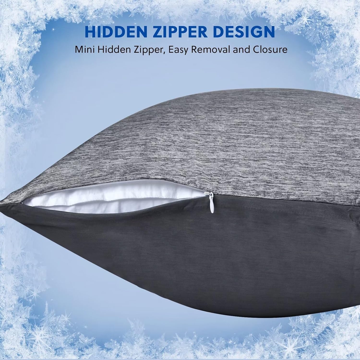 - ENHANCED COOLING - Different from other pillowcases with cooling fiber on the front + ordinary cotton on the back, our cooling pillow covers with double side enhanced cooling design. Both sides use premium cooling fibers and both side Q-Max>0.4. (Surface: 60% mica nyIon + 40% poIyethyIene, Back: 100% mica nyIon). Meanwhile cause we use larger size dense weave cooling fabric, the cooling feeling is greatly enhanced.