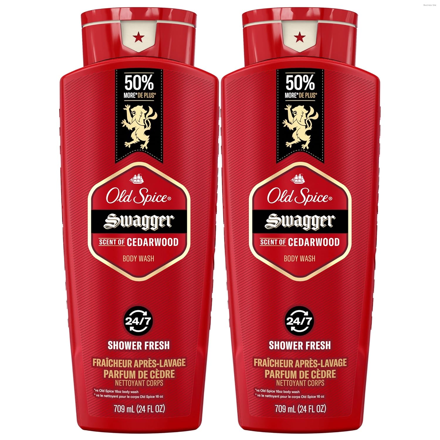 Old Spice Refreshing Body Wash for Men, 3X Defense, 24/7 Shower Fresh with Long Lasting Scent, Red Collection, Swagger with Cedarwood Scent, 24 oz (Pack of 2)