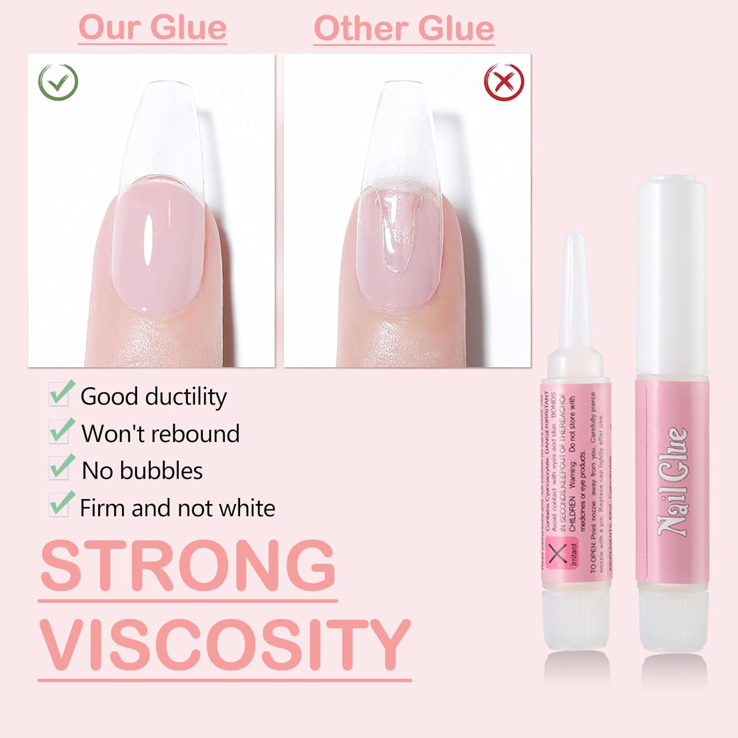 - ♥Easy To Apply And Remove : To make your fake nails last longer, make sure there are no air bubbles or water on your nails for at least an hour when applying nail glue. After applying the false nails, please press the false nails and wait for more than 10 seconds. After the nail gel glue is dry, proceed to the next step of decoration. When removing, please soak in acetone polish remover until the artificial nail glue dissolves instead of directly damaging or peeling nails and will not harm your natural nails.
