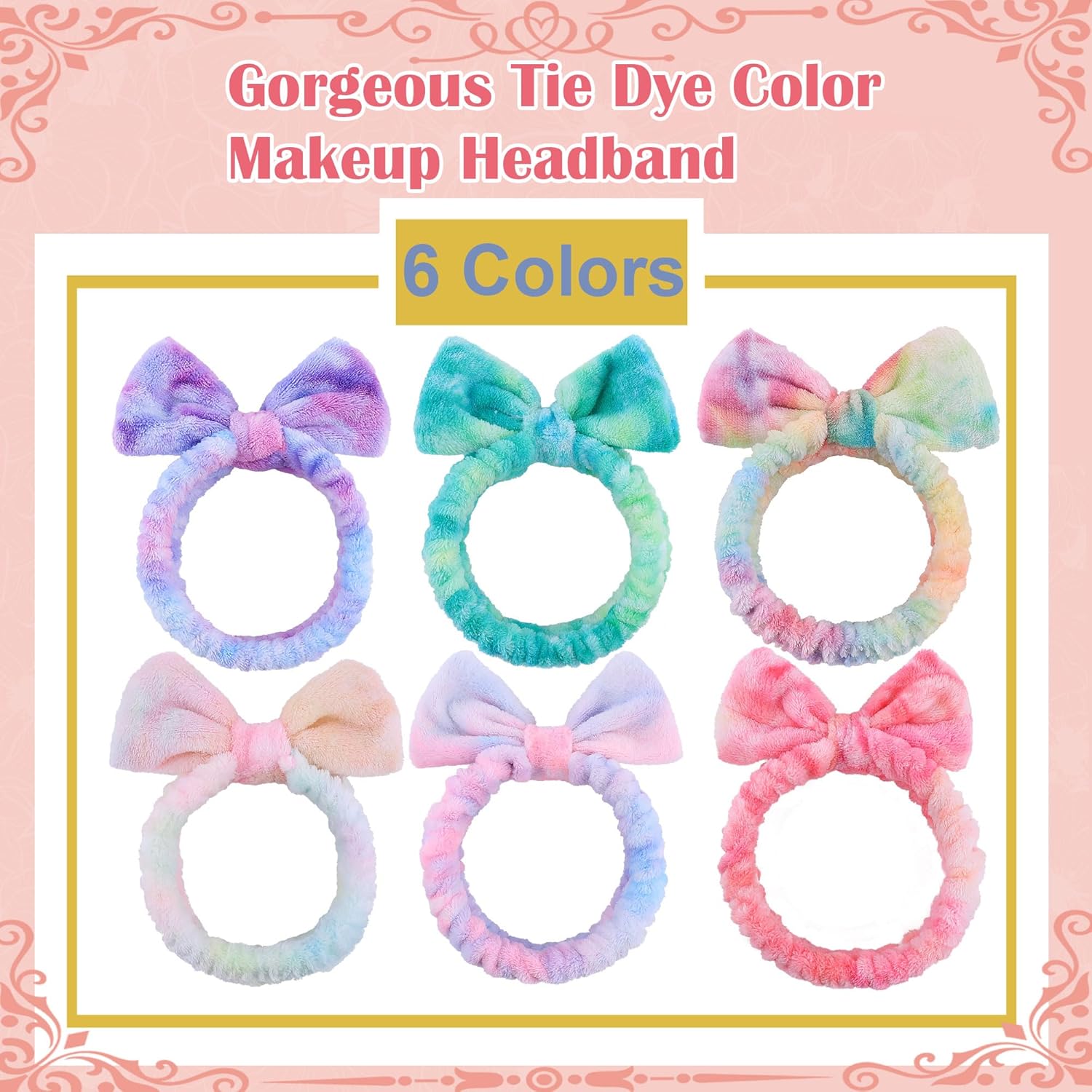WSYUB Skincare Headband, 6pcs, Tie Dye Color, Soft Coral Fleece, Elastic, Washable, Reusable, For Women, Girls, Facial Makeup, Shower, Exercise, Party Gift