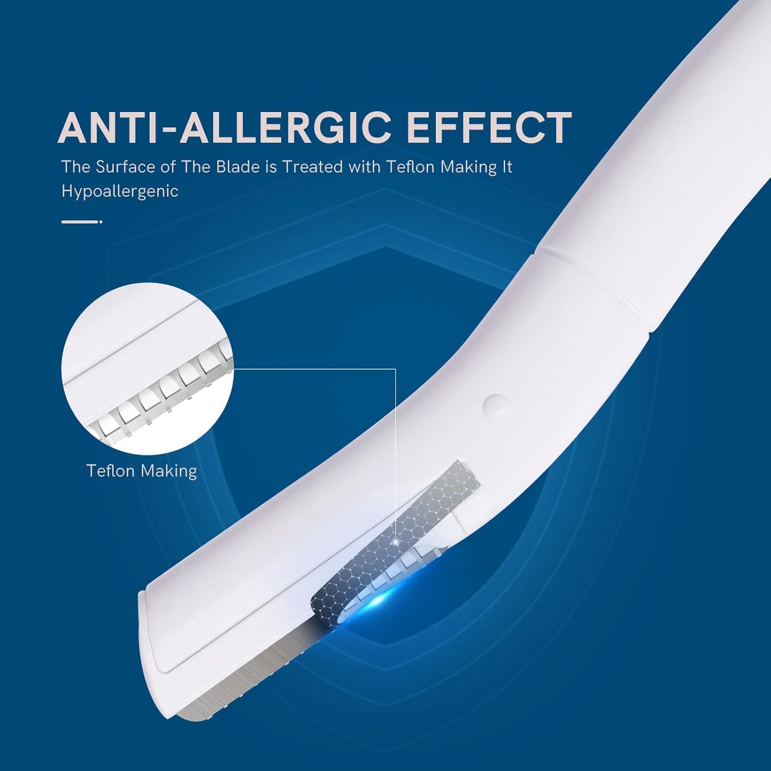 - SAFE AND PRECISE TO USE: This face razor's blade is designed with a macro mesh pattern, which removes eyebrow and lip hair. It is not easy to scratch the skin making it safe to use, and suitable for wide applications. Suitable for different eyebrow shapes. The precision shaver blades easily removes unwanted hair on all area’s of the face whether it’s the forehead, cheeks, lips and chin.