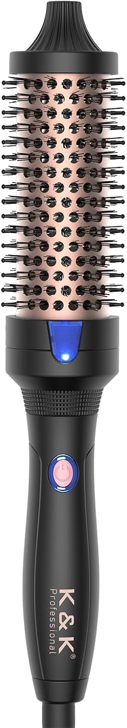 K&K Heated Curling Brush - 1.5 Inch Ceramic Tourmaline Ionic Volumizing Hot Brush for Root Volume & Loose Curls (Black)