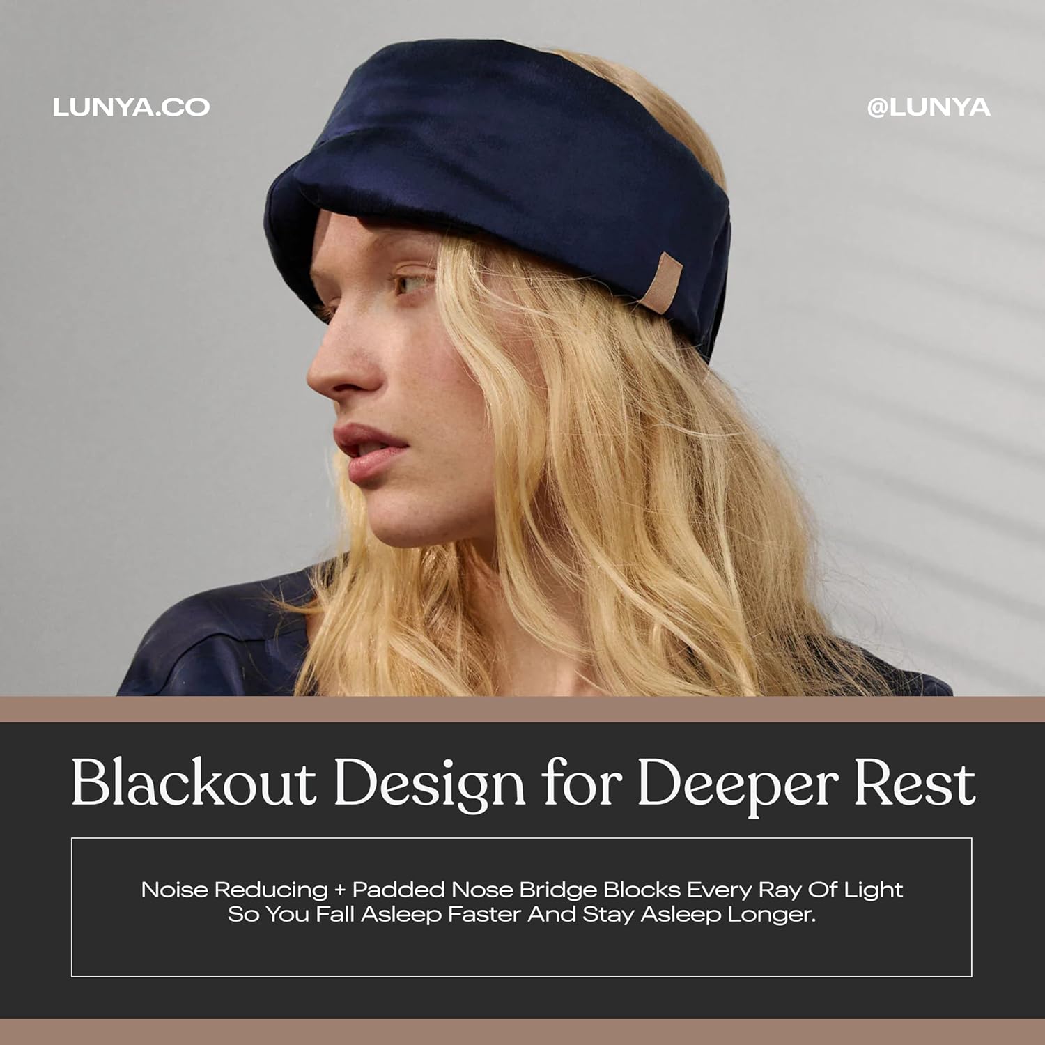 Lunya Sleep Mask with Box - Washable Silk Sleeping Mask and Headband for Beauty Routines - Thermoregulating Comfort for Restful Nights - Silk Eye Mask for Women - Small - Deep Blue