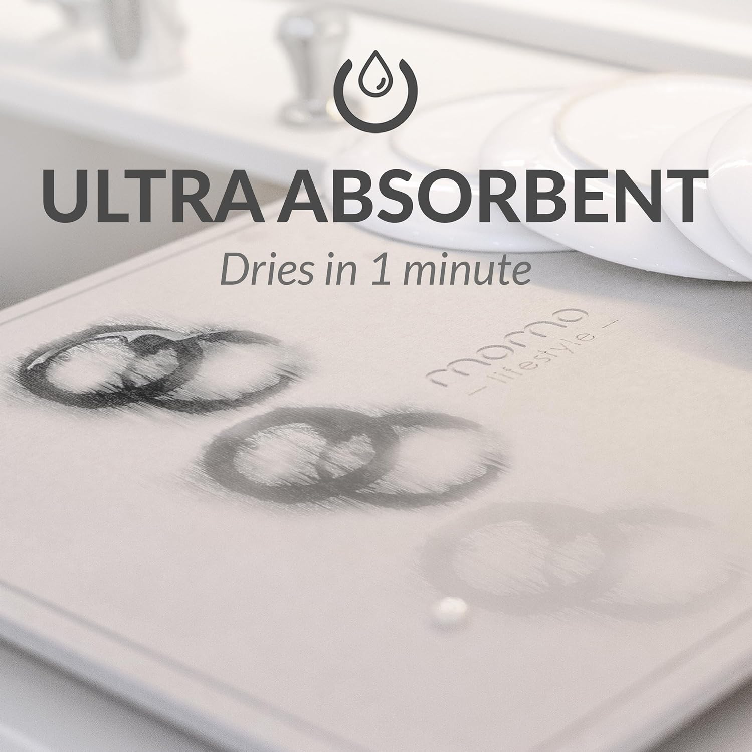 - ULTRA ABSORPTION: Experience the ultra-absorbent DryPad, a fast drying stone mat for the kitchen by Momo Lifestyle. Crafted from real diatomaceous earth, it rapidly absorbs water and evaporates moisture, keeping kitchen counters, drawers, and floors dry, clean, and free from leakages, bacteria, and odors.