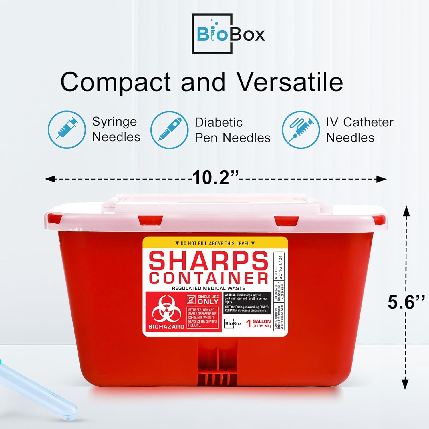 Sharps Container Large - Sharps Containers for Home Use and Labs - Portable Needle Disposal and Travel Size Biohazard Bin - 1 Gallon (Pack of 1)
