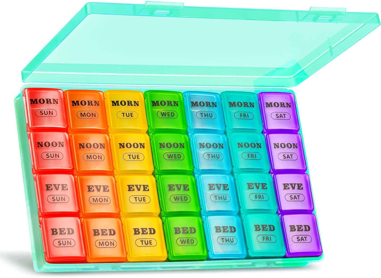 XL Large Weekly Pill Organizer 4 Times a Day, 7-Day Pill Boxes and Organizer AM PM, Big Compartments Pill Case, Monthly Medication Organizer 28 Days Dispenser for Fish Oils