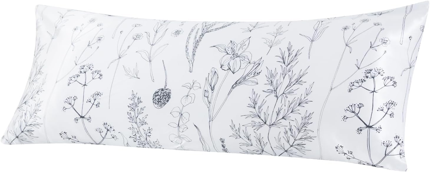 EXQ Home Satin Body Pillow Pillowcase Super Soft Silk Pillowcase, Body Pillow Cover with Envelope Closure Flowers with White Background (20"x54")