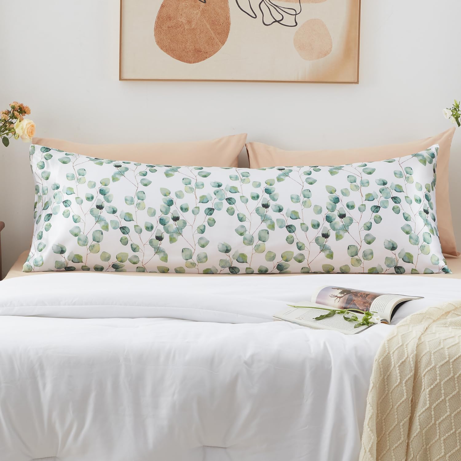 EXQ Home Satin Body Pillow Pillowcase Super Soft Silk Pillowcase, Body Pillow Cover with Envelope Closure Ink Leaf (20"x54")