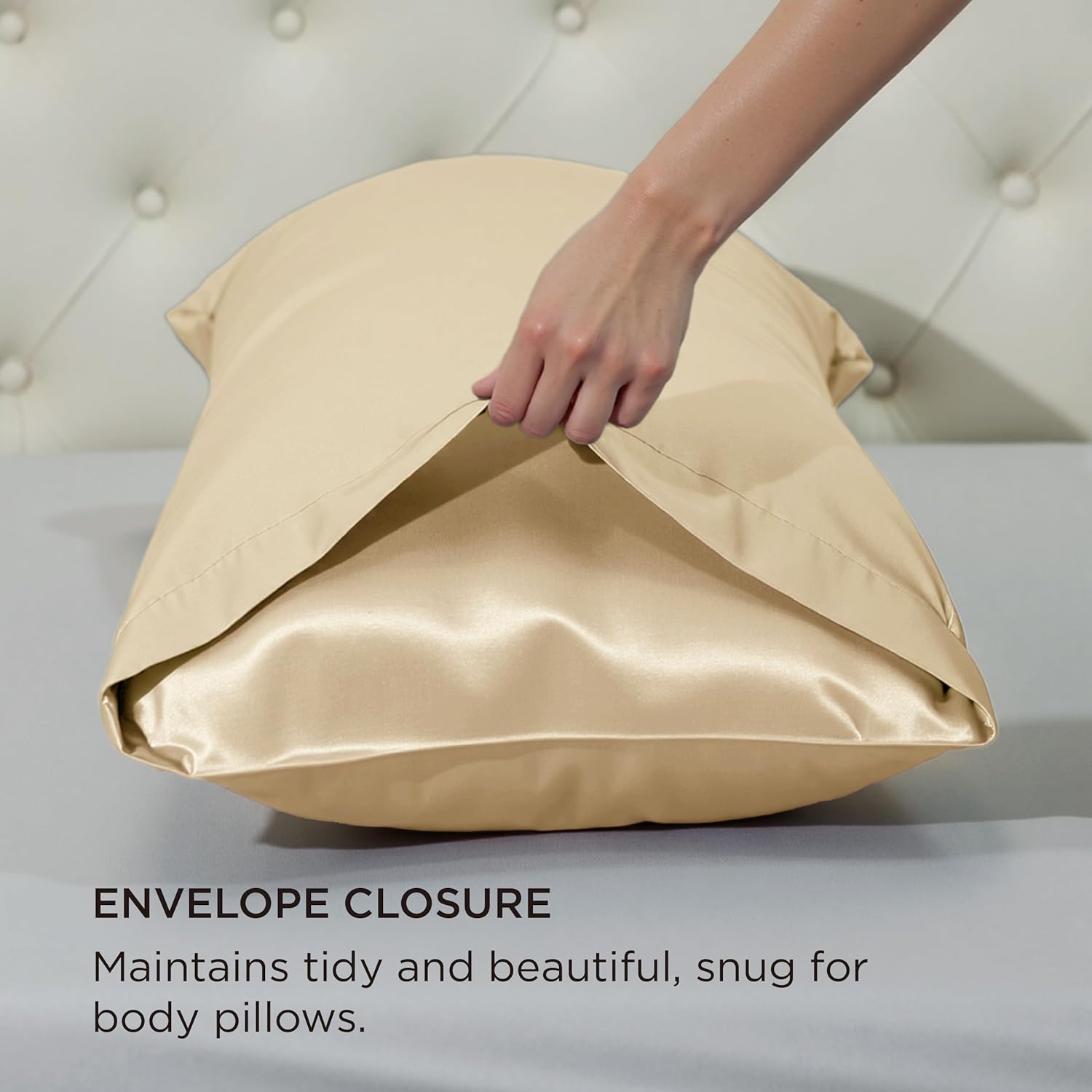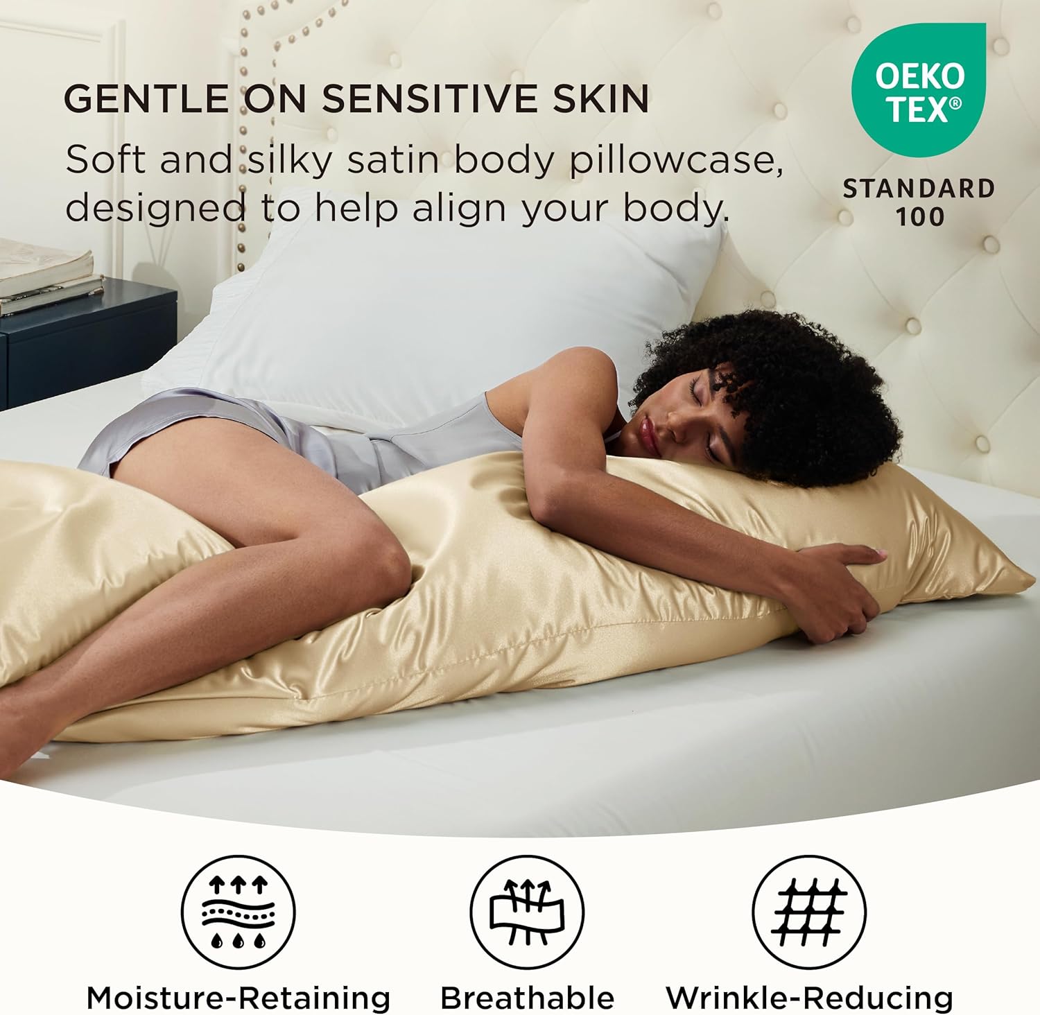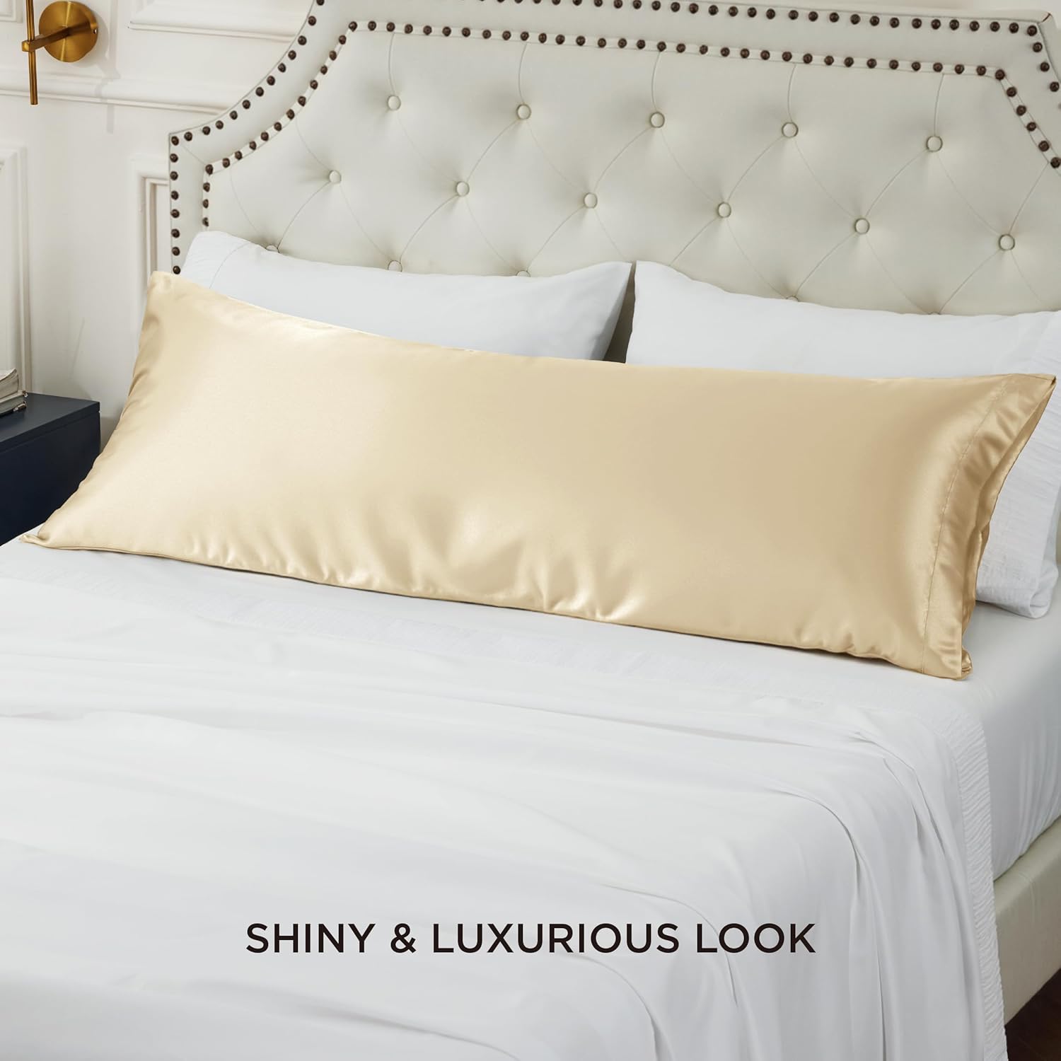 Bedsure Body Pillow Cover 20x54 Inches - Champagne Satin Similar to Silk Pillowcase for Hair and Skin, Cooling and Silky Long Body Pillow Pillowcase with Envelope Closure, Gifts for Women Men