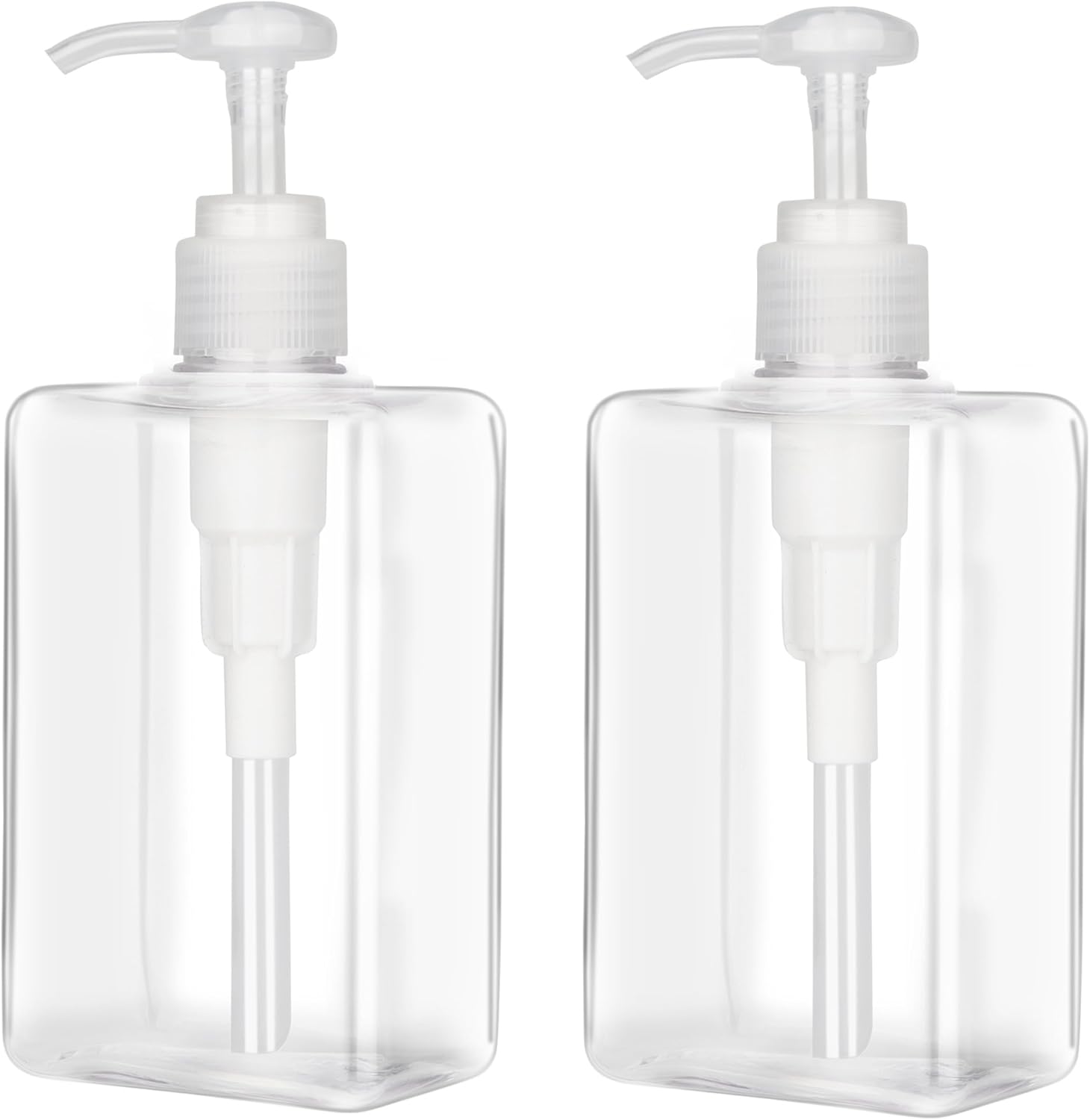 280ml (9.5oz) Pump Bottle Dispenser Jansburg 2 Pack Refillable Flat Square Plastic Lotion Dispenser Leakproof Empty Lotion Pump Bottle for Essential Oil Soap Lotion Shampoo Clear