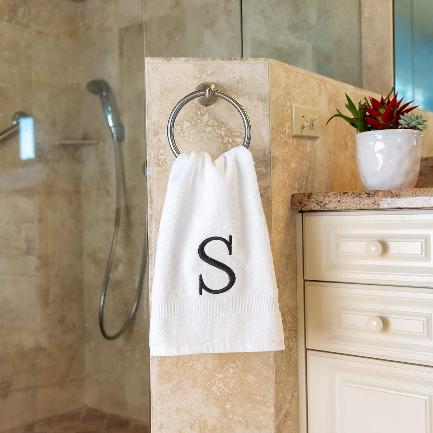 - Premium Quality - High quality durable soft rich monogram letter hand towels in white cotton with dary gray stitching