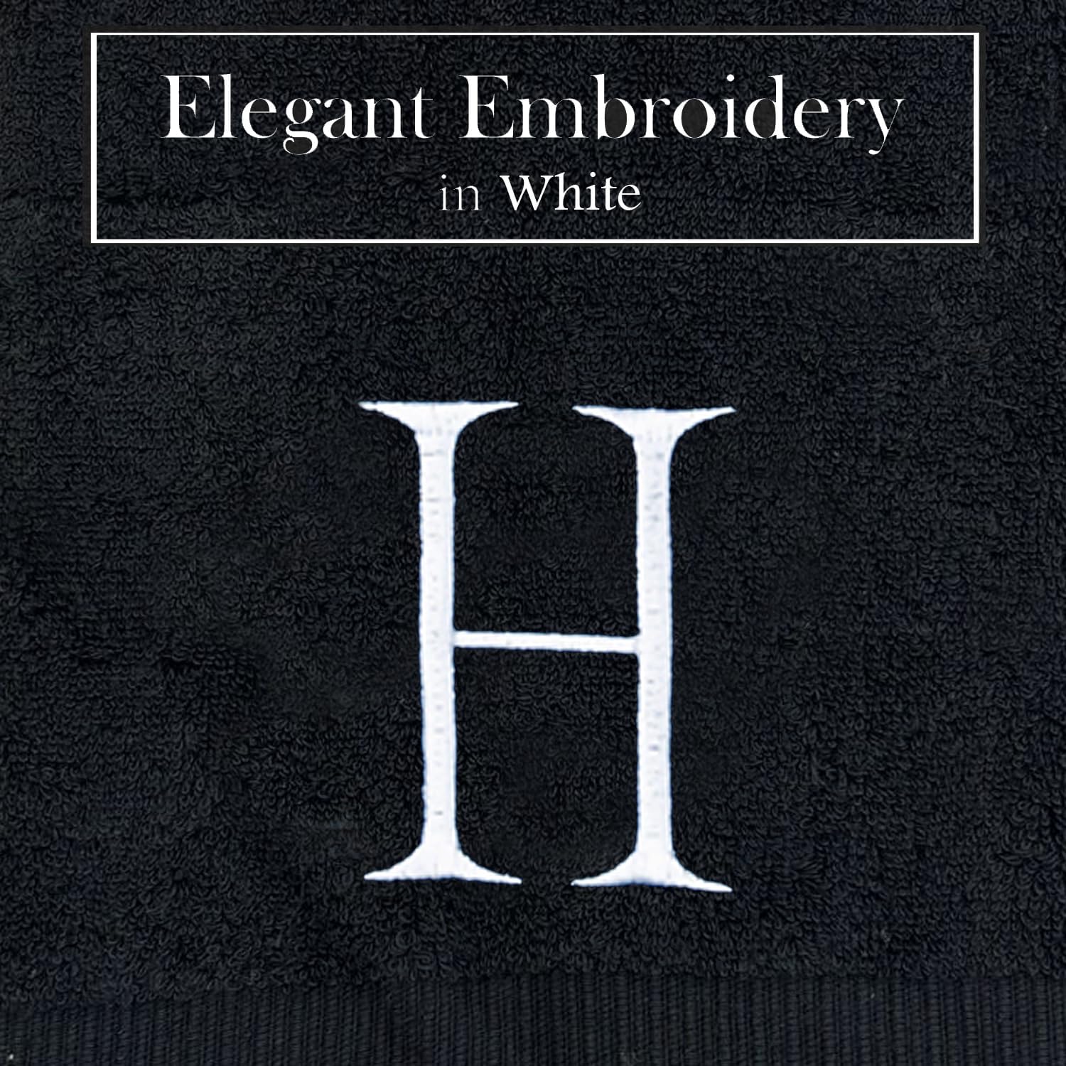 White and Black Monogrammed Hand Towel - Monogram Initial Hotel Quality Decorative Embroidered Luxury Towel for Powder Room, Spa - GOTS Organic Certified - Pack of 2, Letter H