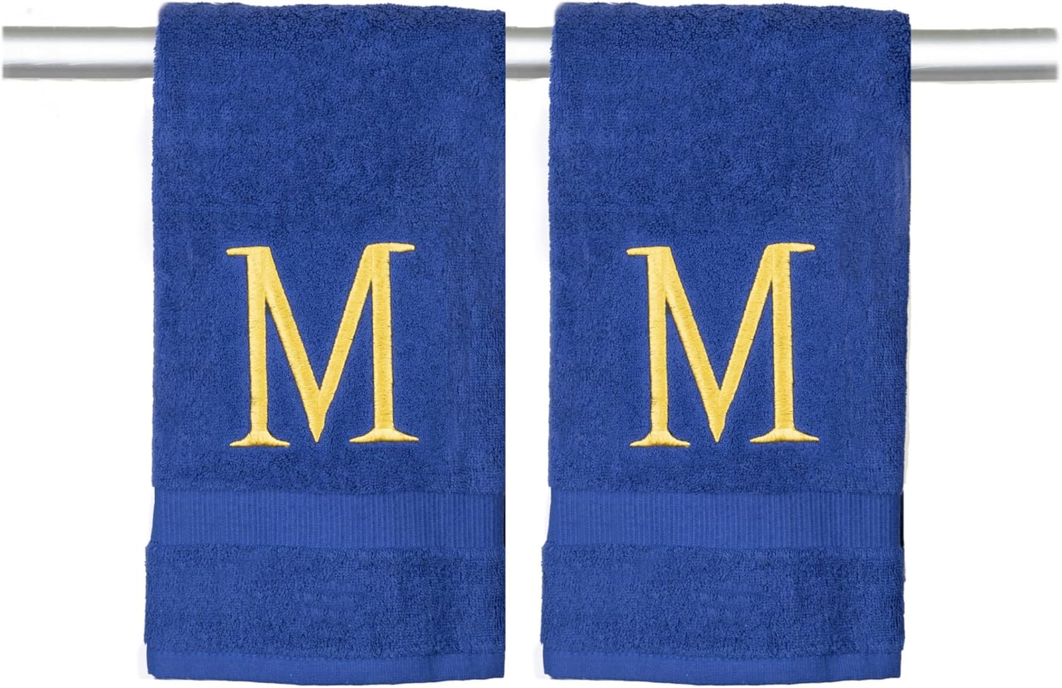 - Premium Quality - High quality durable soft rich monogram letter hand towels in navy cotton with gold stitching